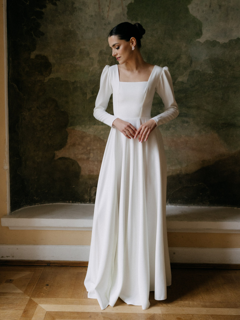 Sophia A359 - wedding dress with square neckline and long sleeves with buffets 1