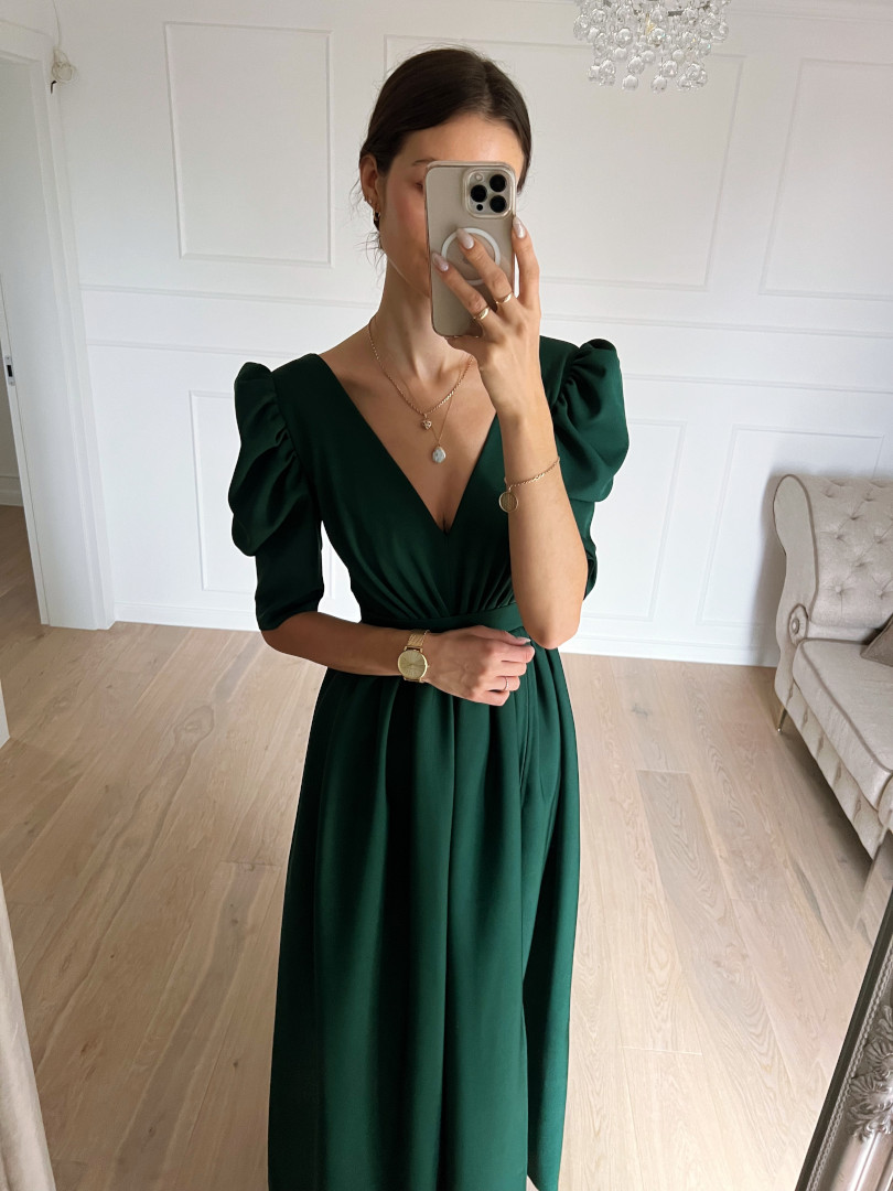 Laurell - maxi dress with flared bottom and buffets in bottle green color