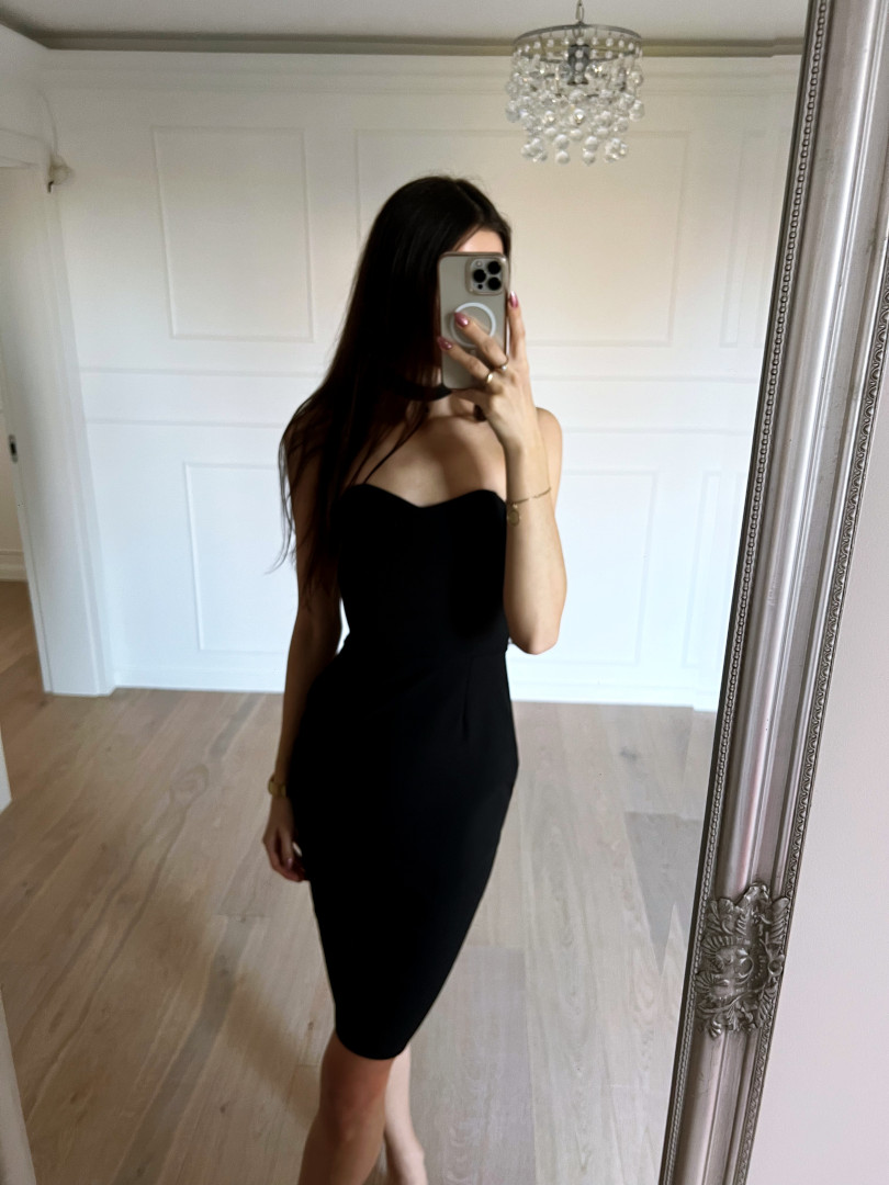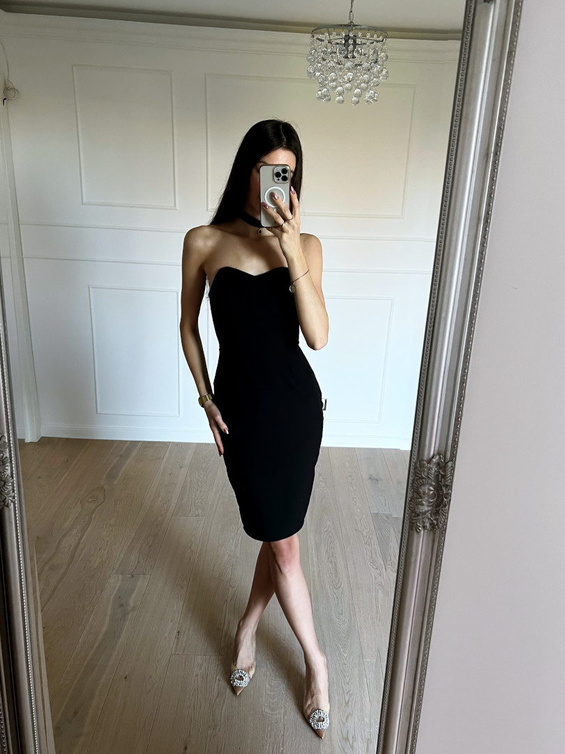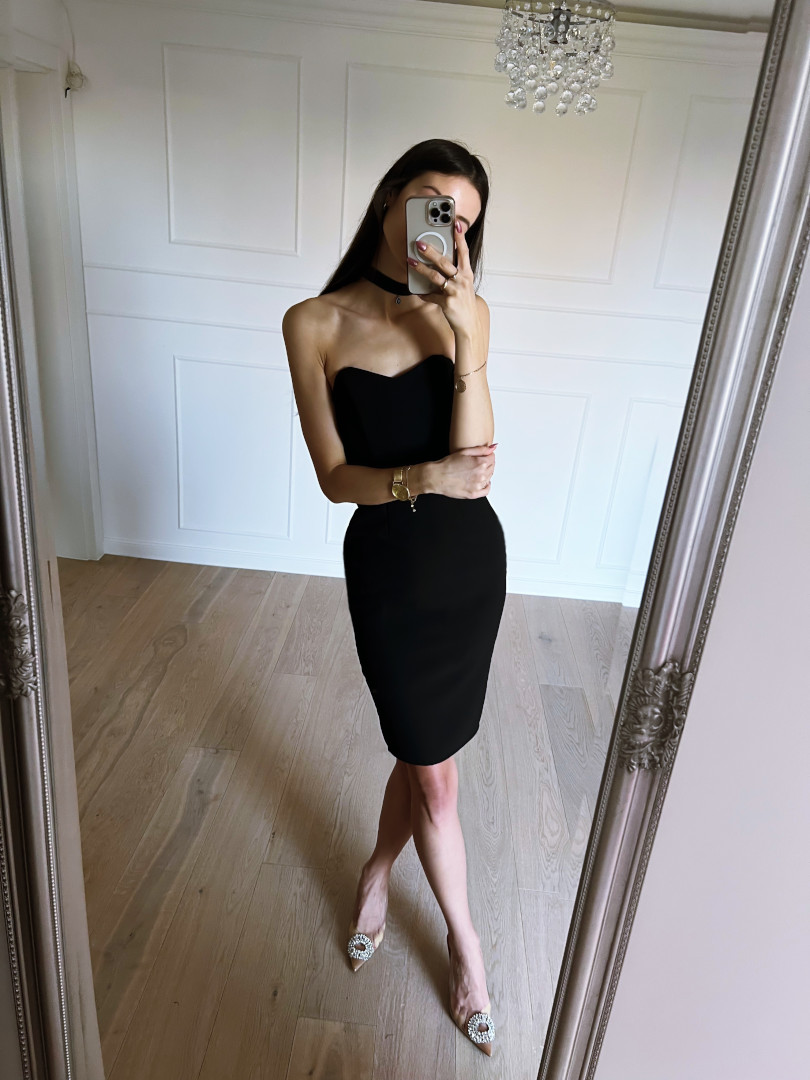 Hannah-long corset dress in black with an open top Length