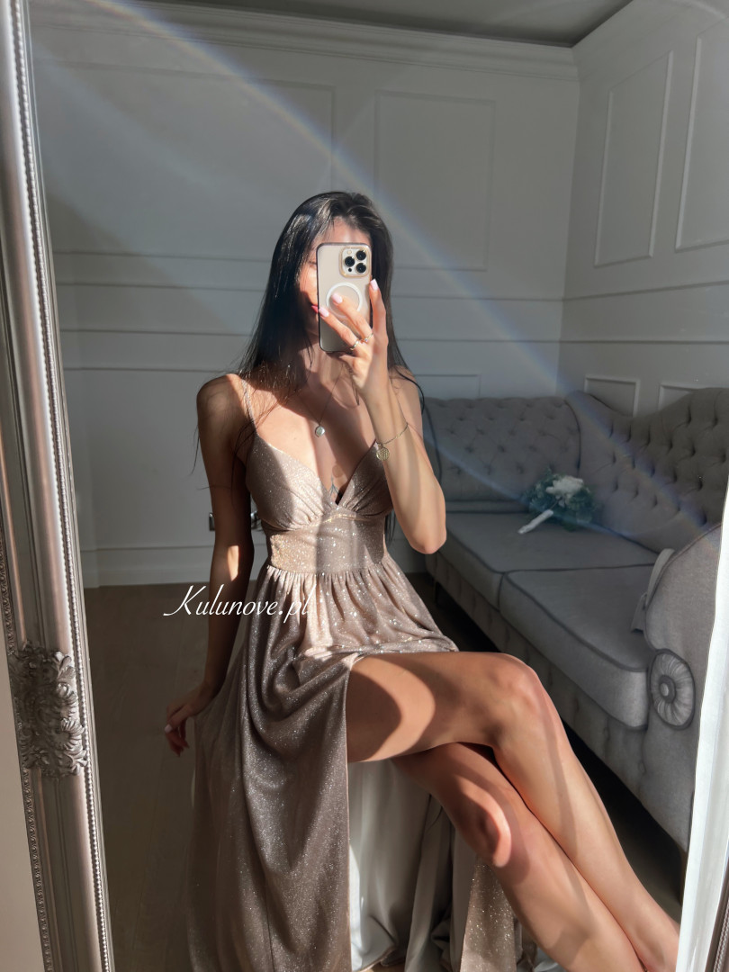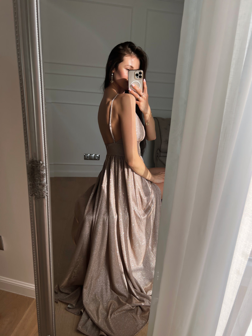 The dress sparkles and shimmers.