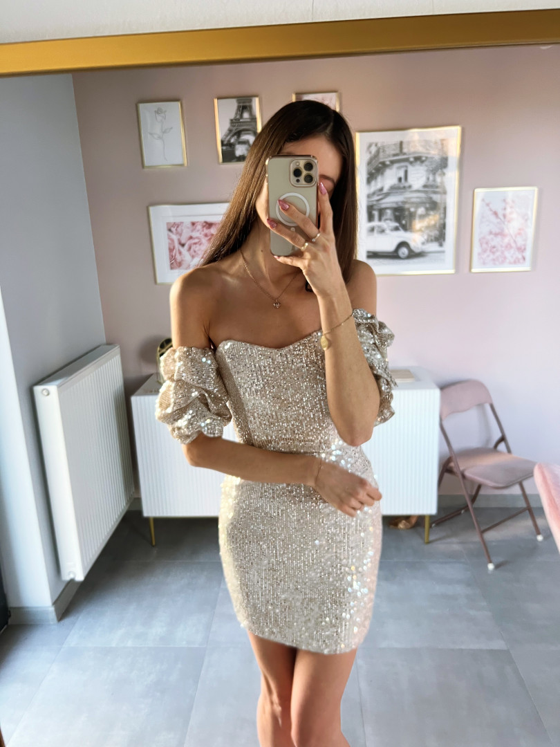 Andromeda - long shimmering dress with short sleeves Dresses for Tall Women Outlet