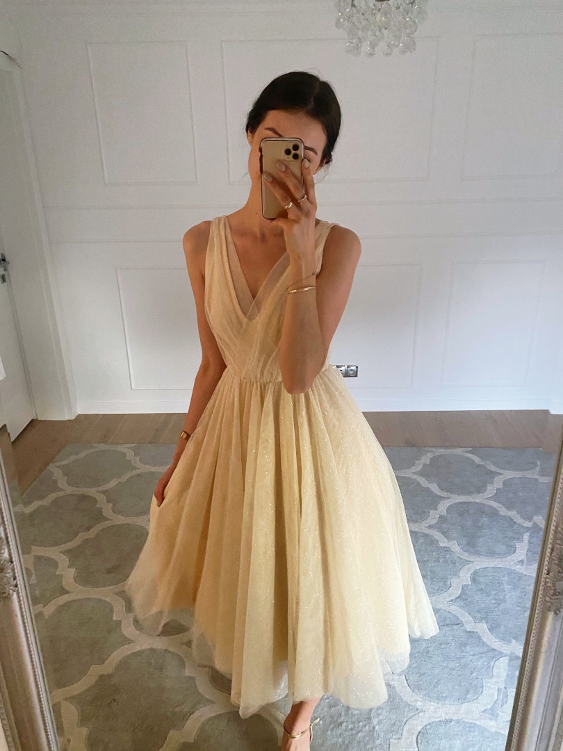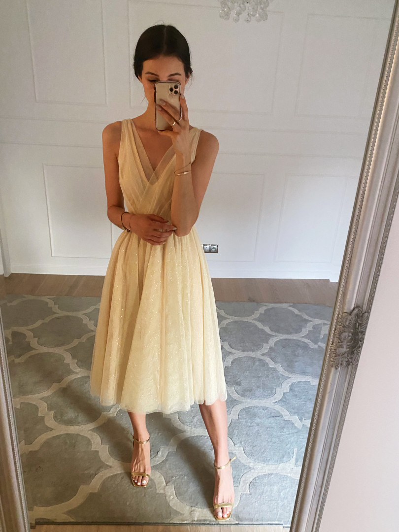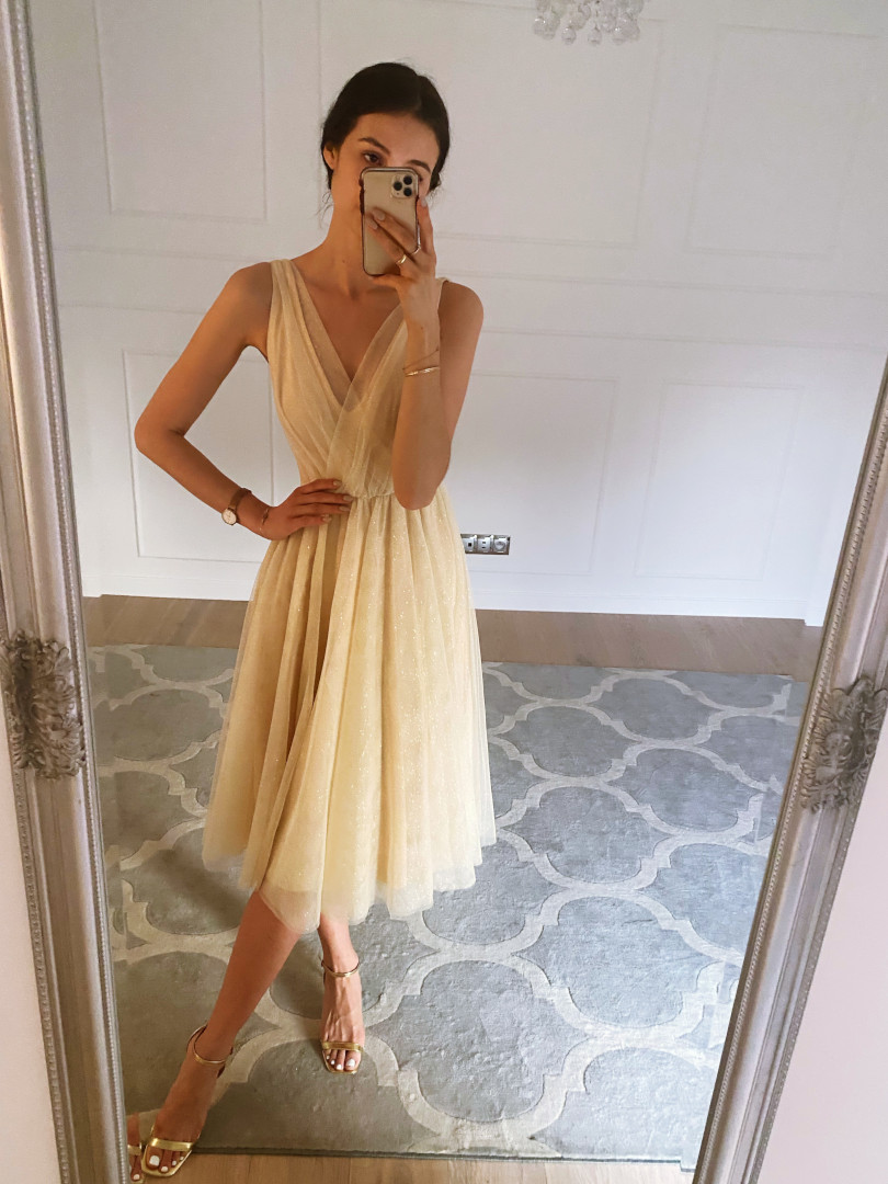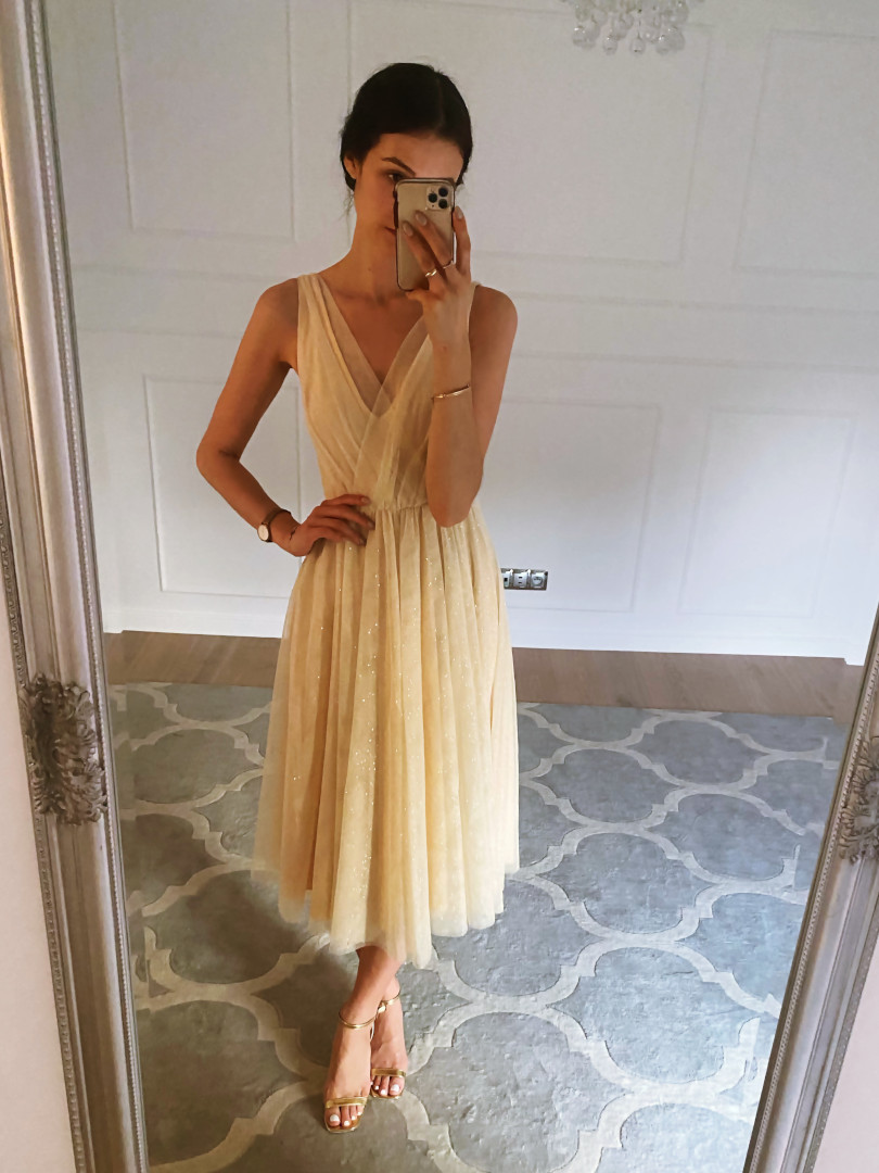 Tulle midi dress with glitter.