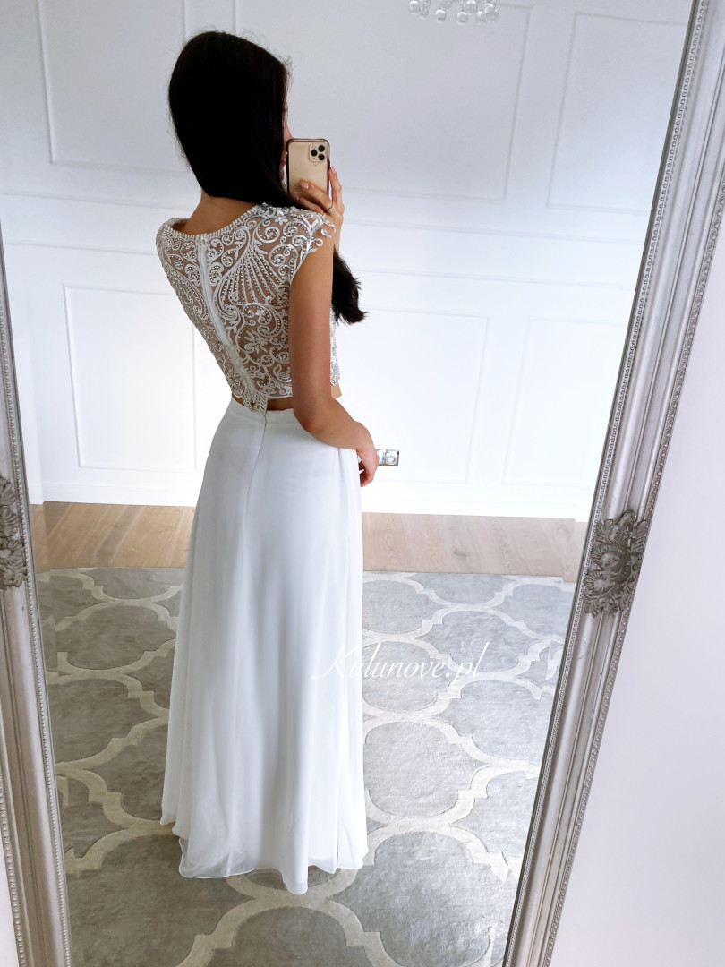 Cynthia - a classic, simple gown in cream color Occasion