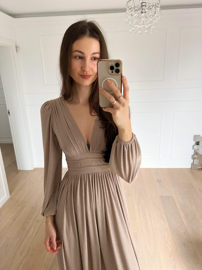 It is natural for the glitter to fall off, which will be less on the dress over time.