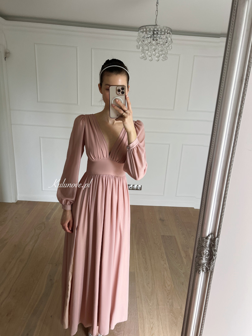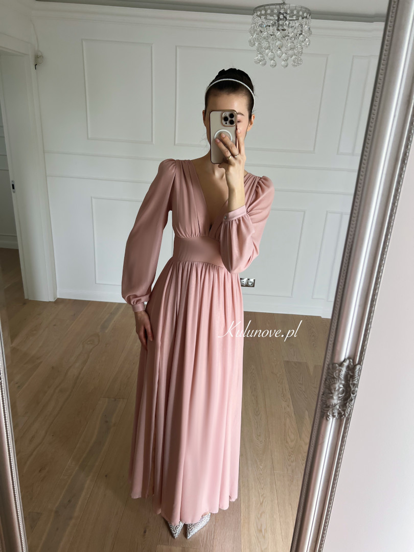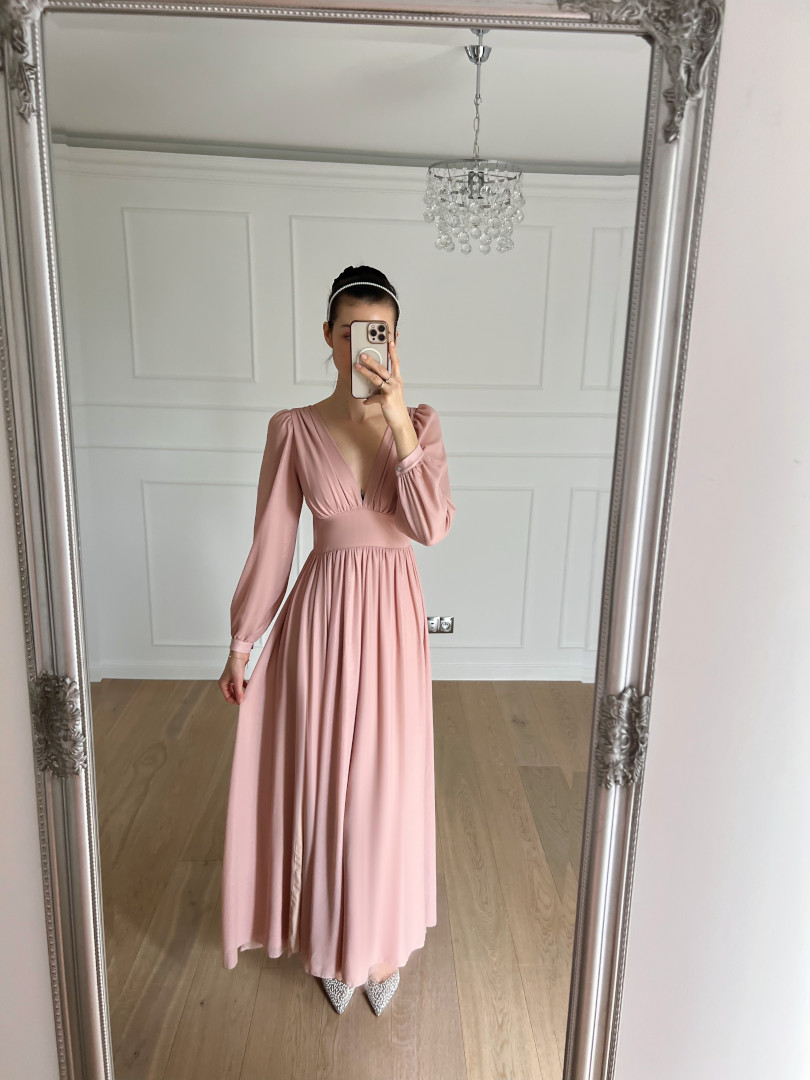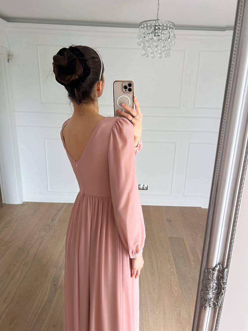 It has a V-shaped neckline, which beautifully emphasizes the bust.