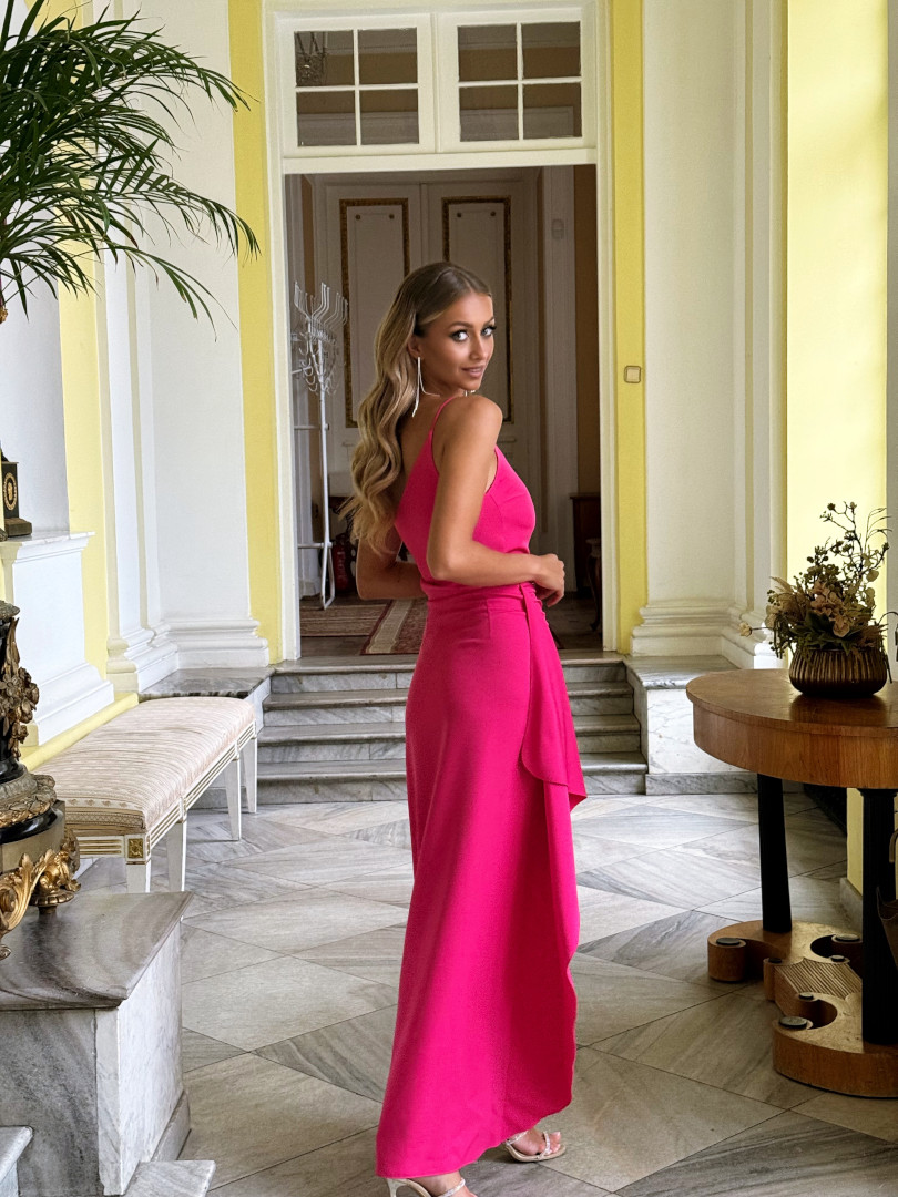 Miami - long asymmetrical dress in fuchsia color with one shoulder