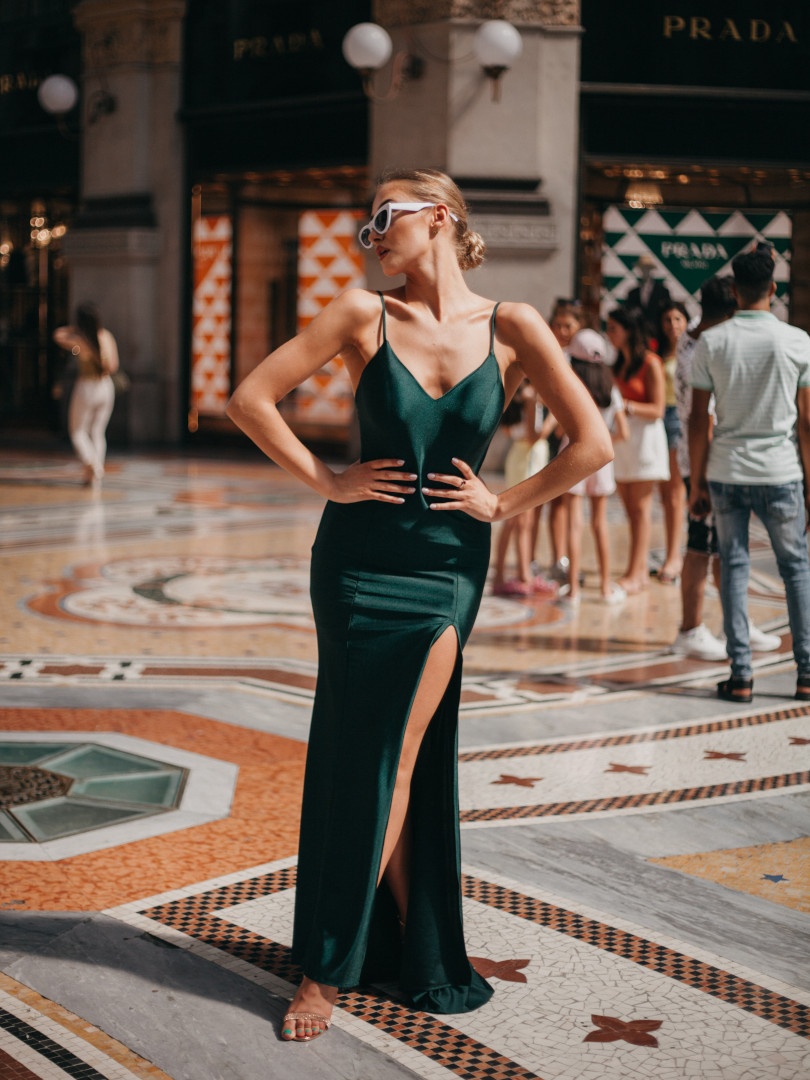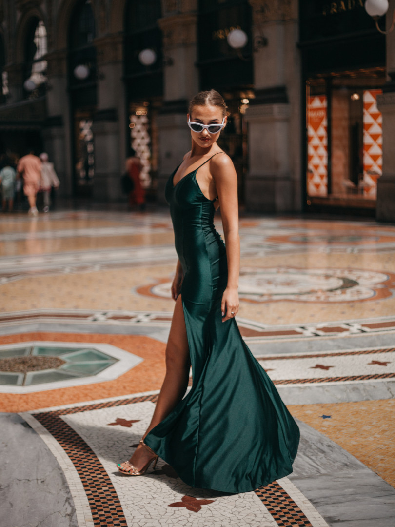 Andromeda - long shimmering dress with short sleeves Dresses for Tall Women Outlet