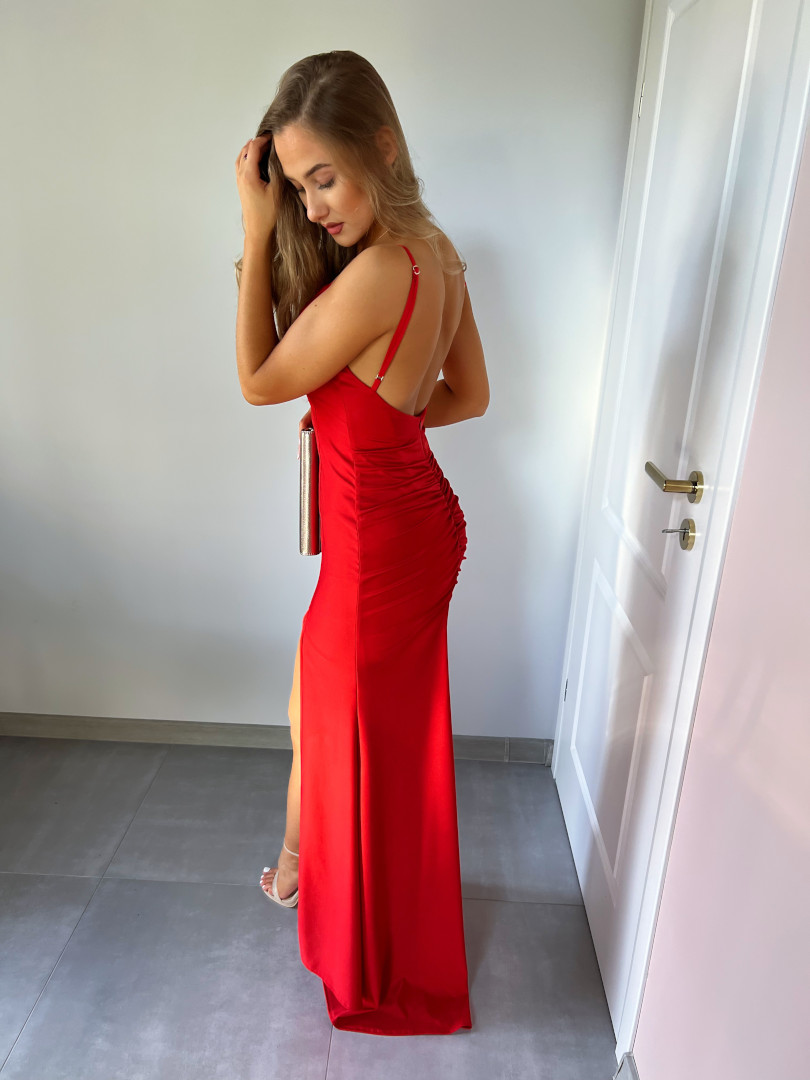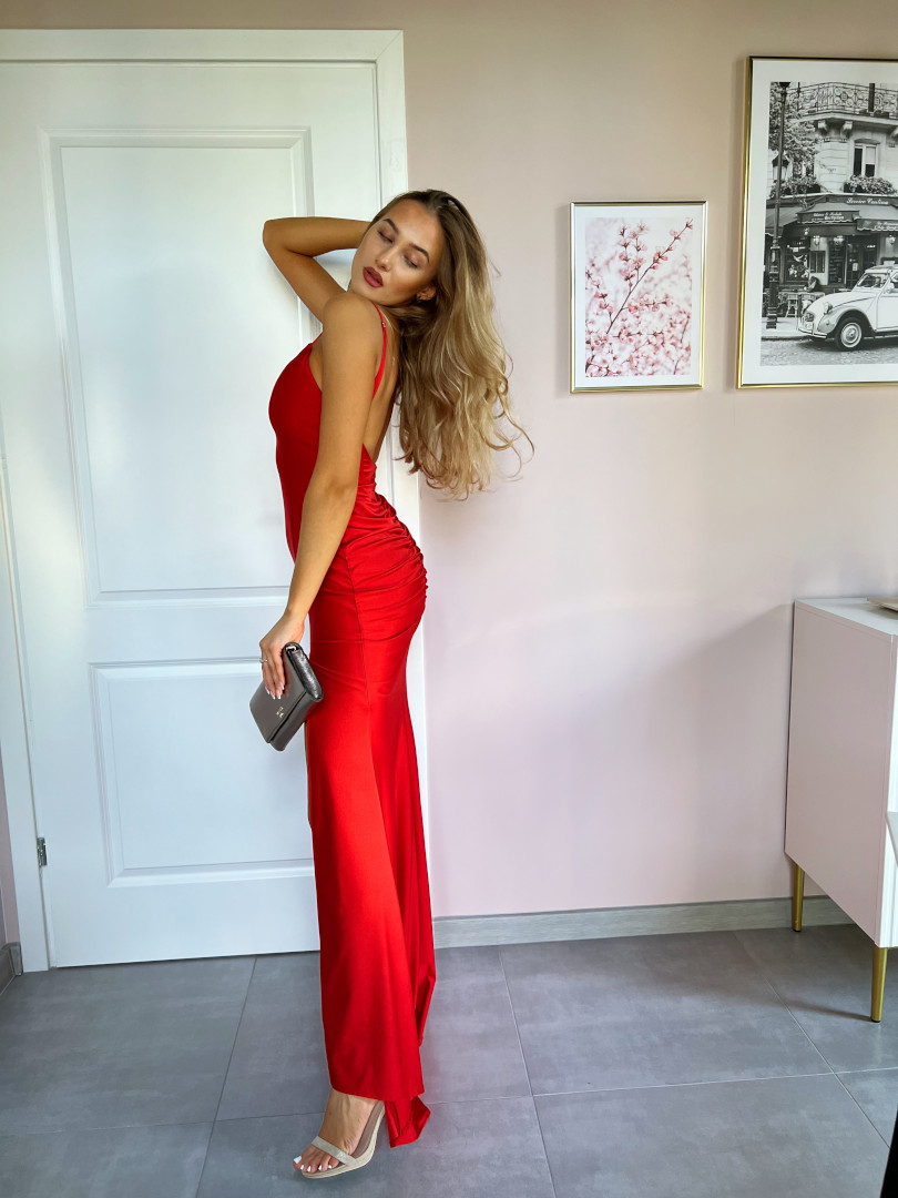 Angelina maxi - red flared envelope maxi dress with open shoulders Style