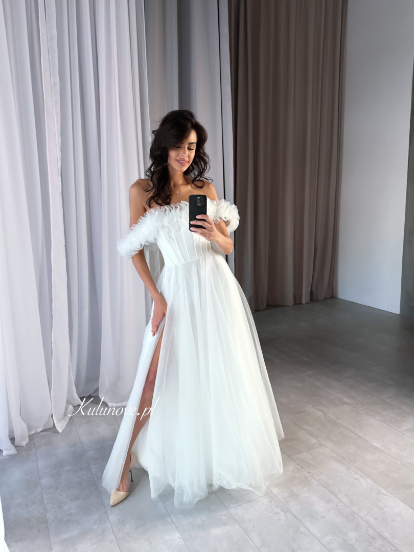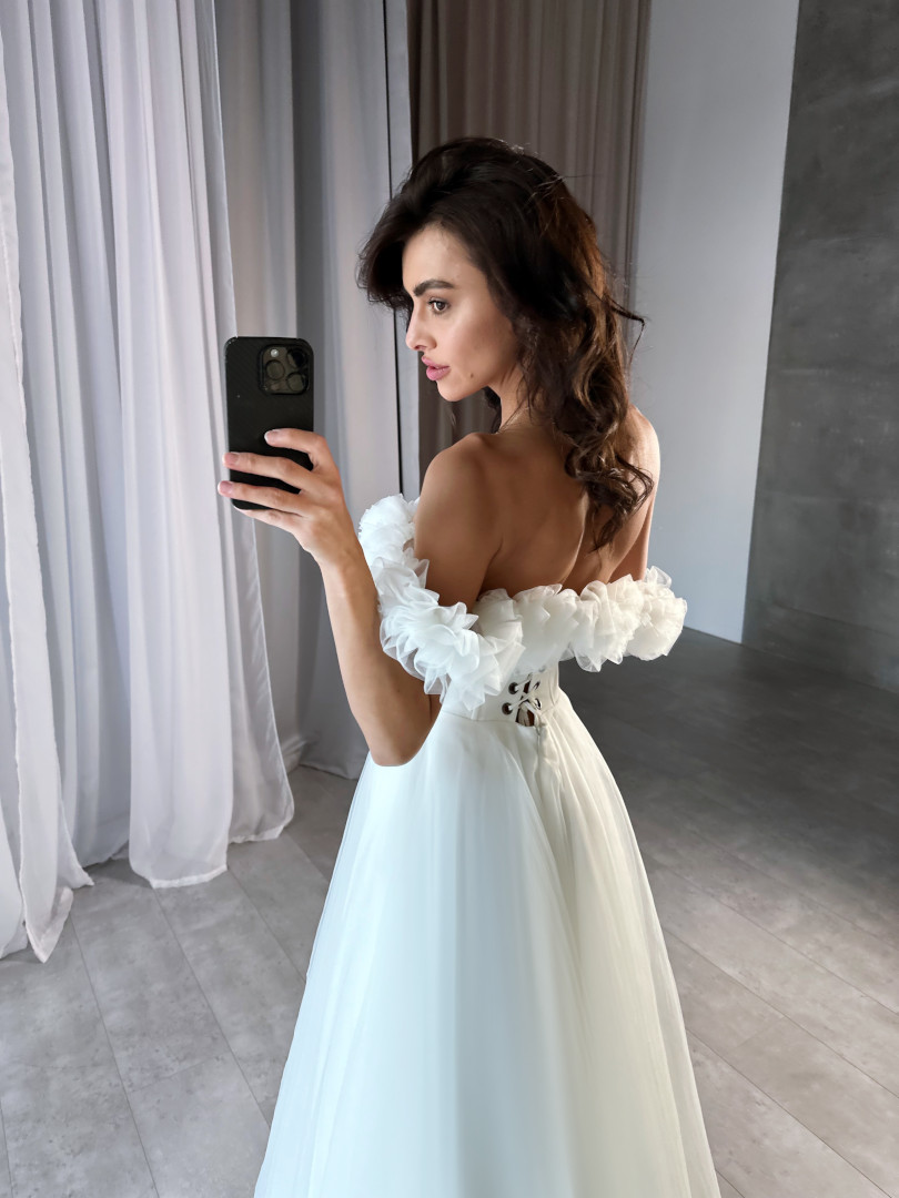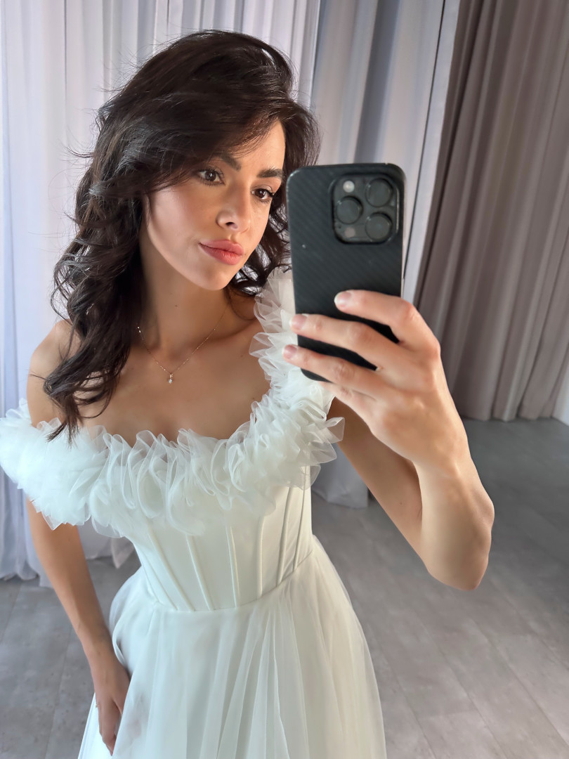 Please take special care when fastening the dress. We suggest making sure the tulle is evenly aligned and not too close to the zipper before fastening. Attention to this detail will help avoid accidental damage and prolong the life of the product.