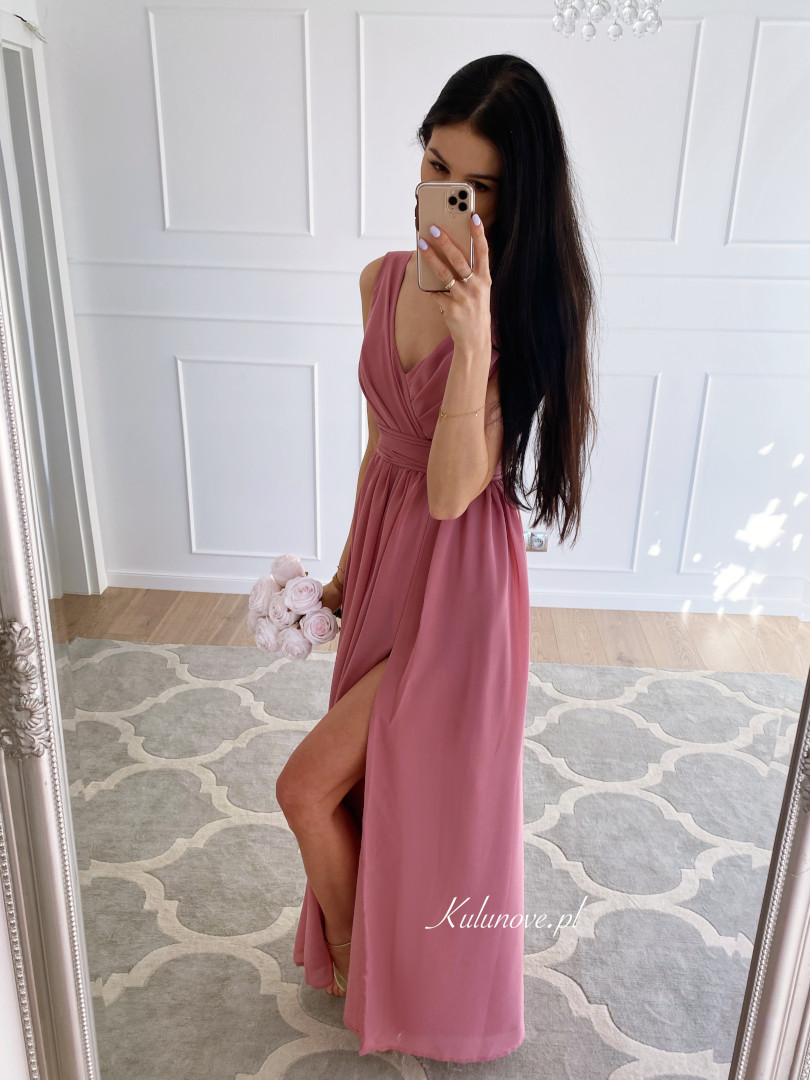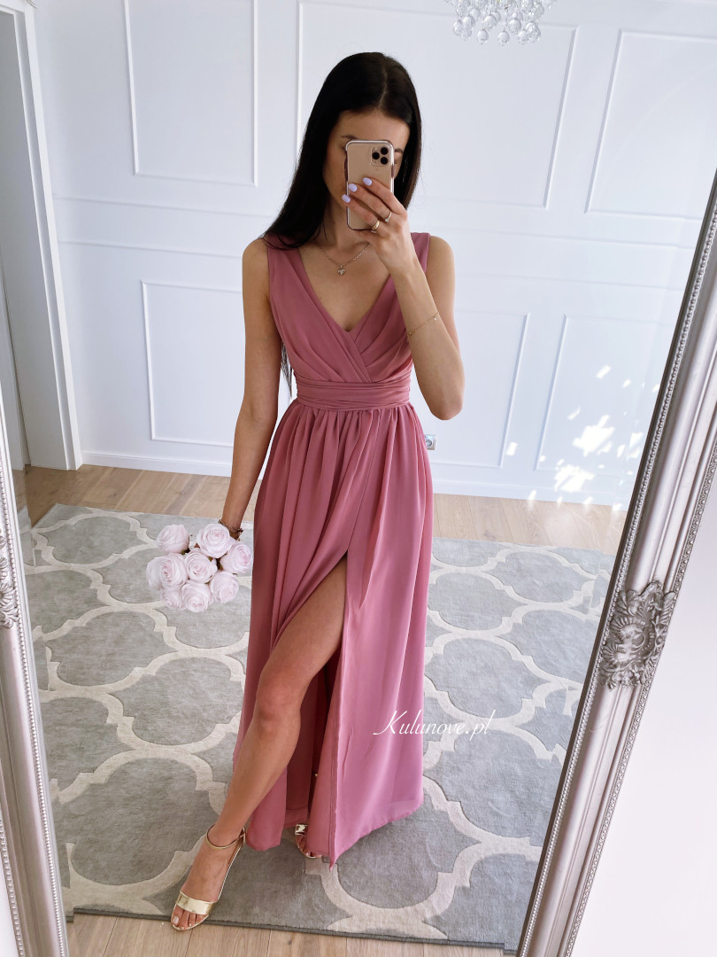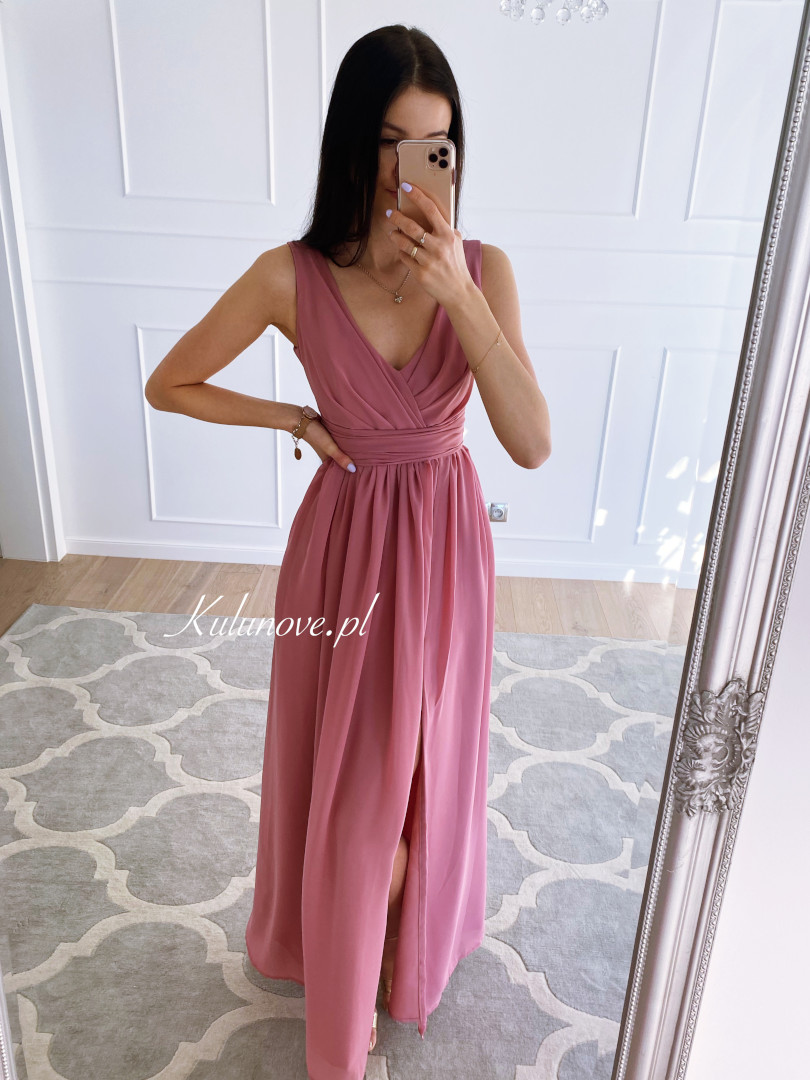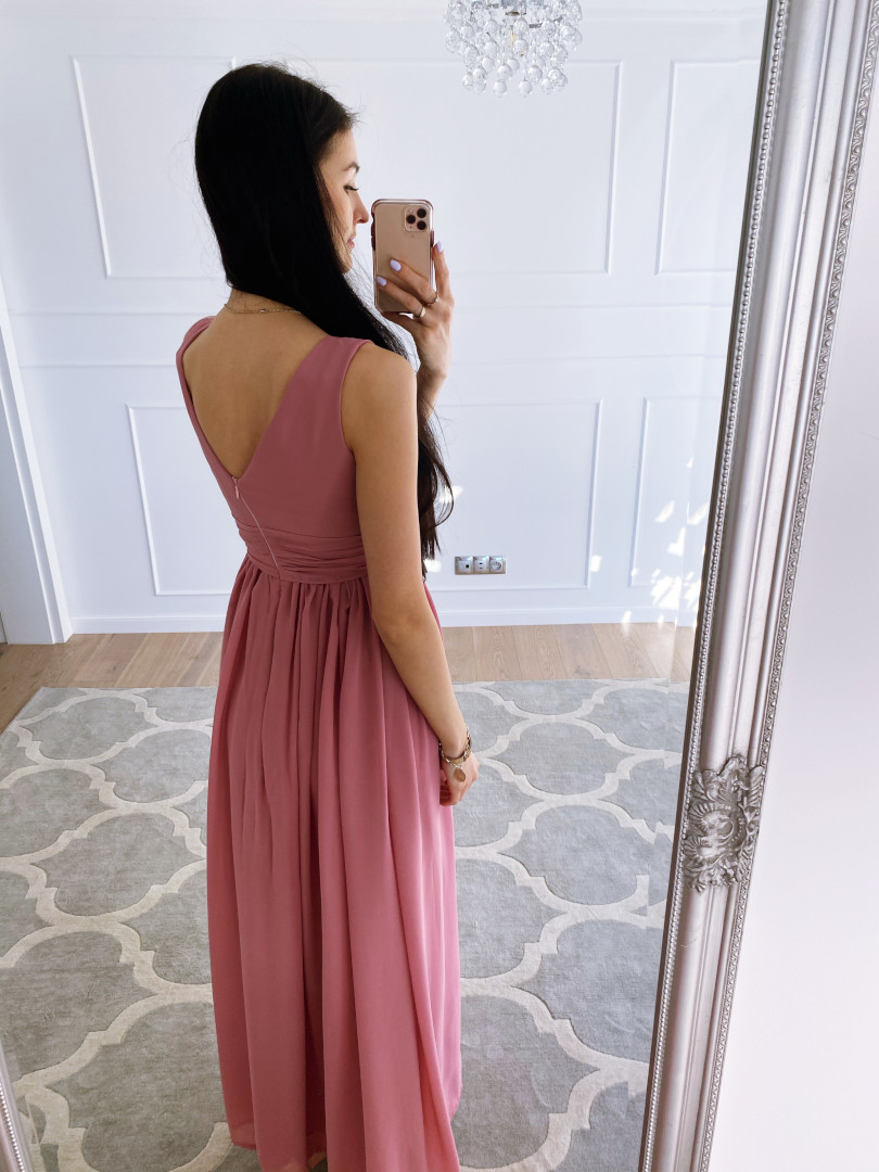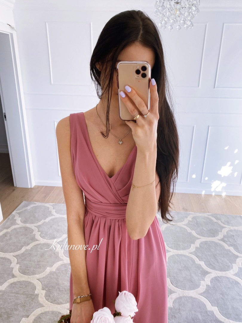 Molly - ciemnoróżowa prosta sukienka z marszczeniem w pasie