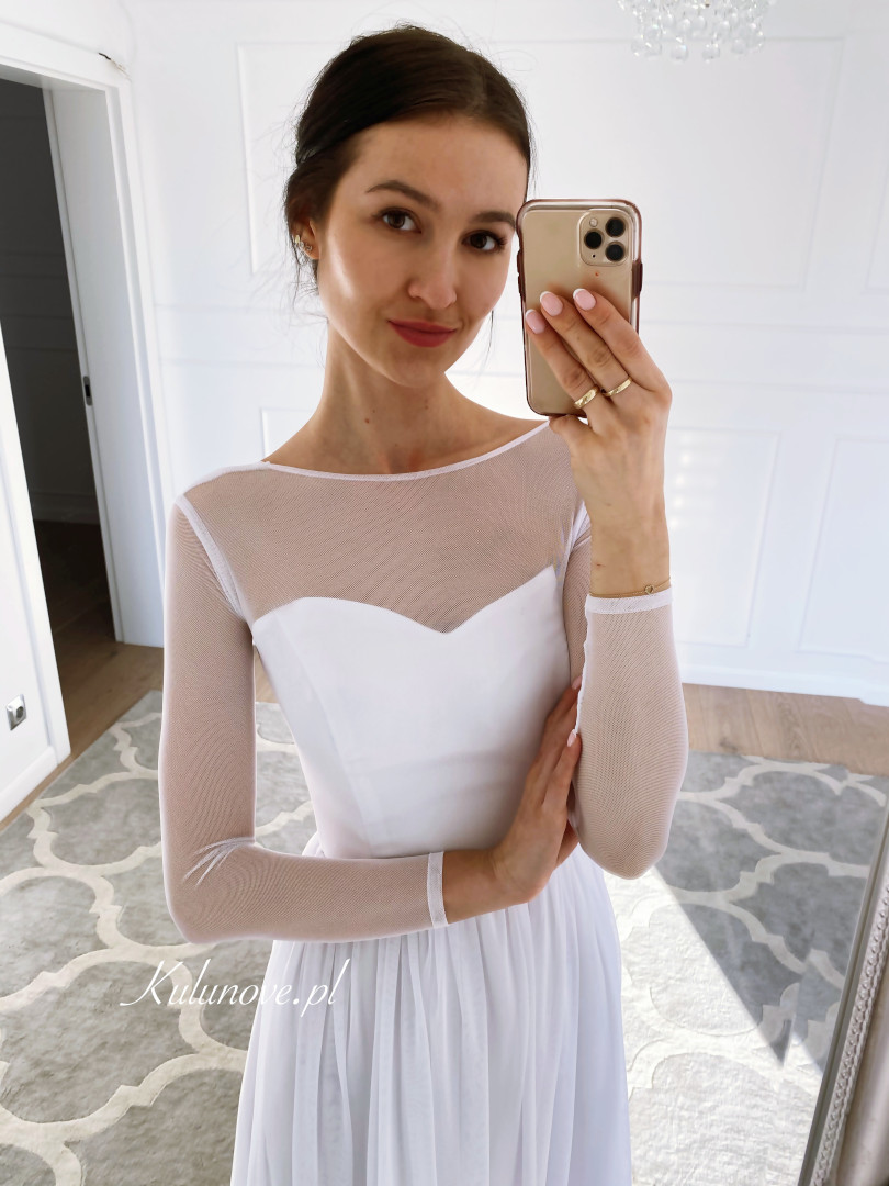 The sleeves are made of elastic mesh, perfectly fit the body and do not restrict movement.