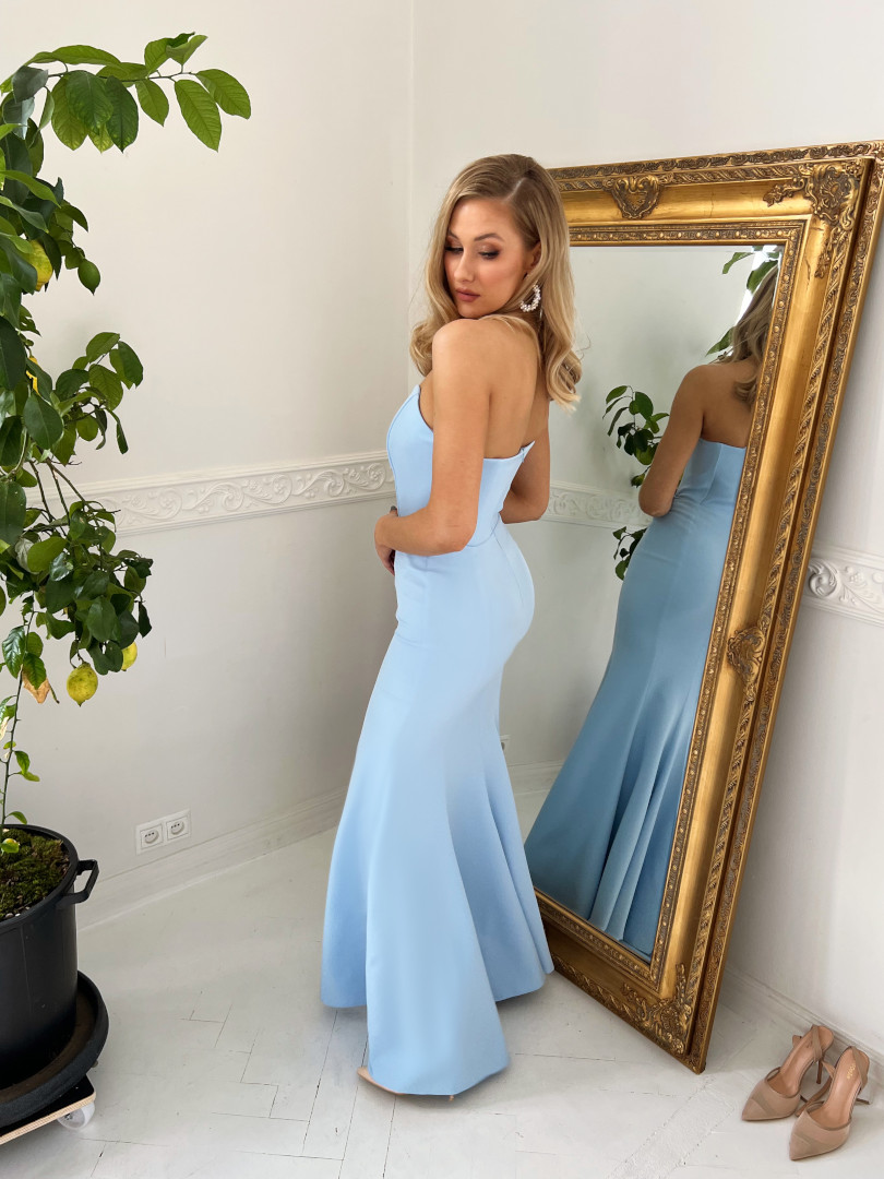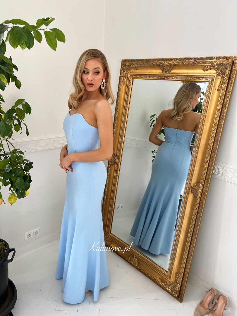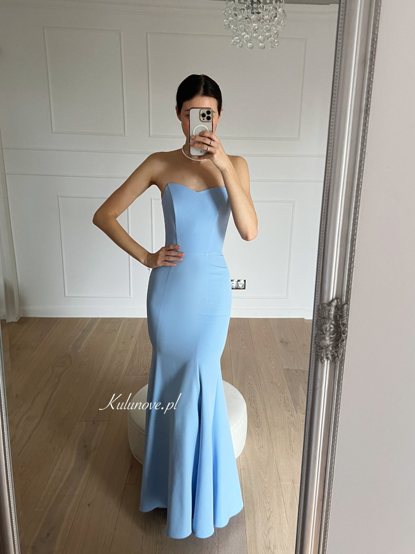 Monalisa blue - mermaid-shaped maxi dress with open shoulders