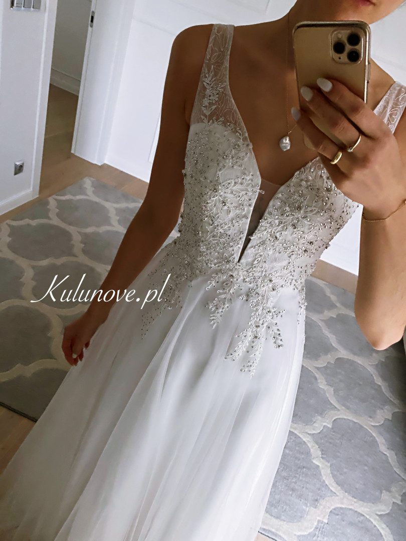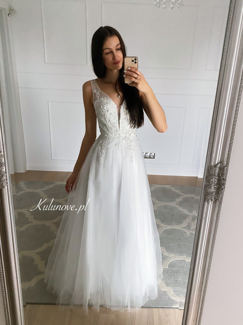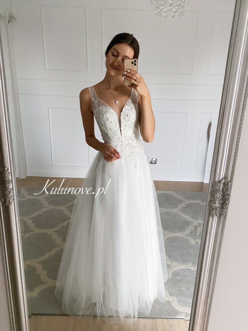 Please take special care when zipping up tulle dresses. We suggest that before fastening, make sure that the tulle is evenly arranged and not too close to the zipper. Attention to this detail will help avoid accidental damage and prolong the life of the dress.