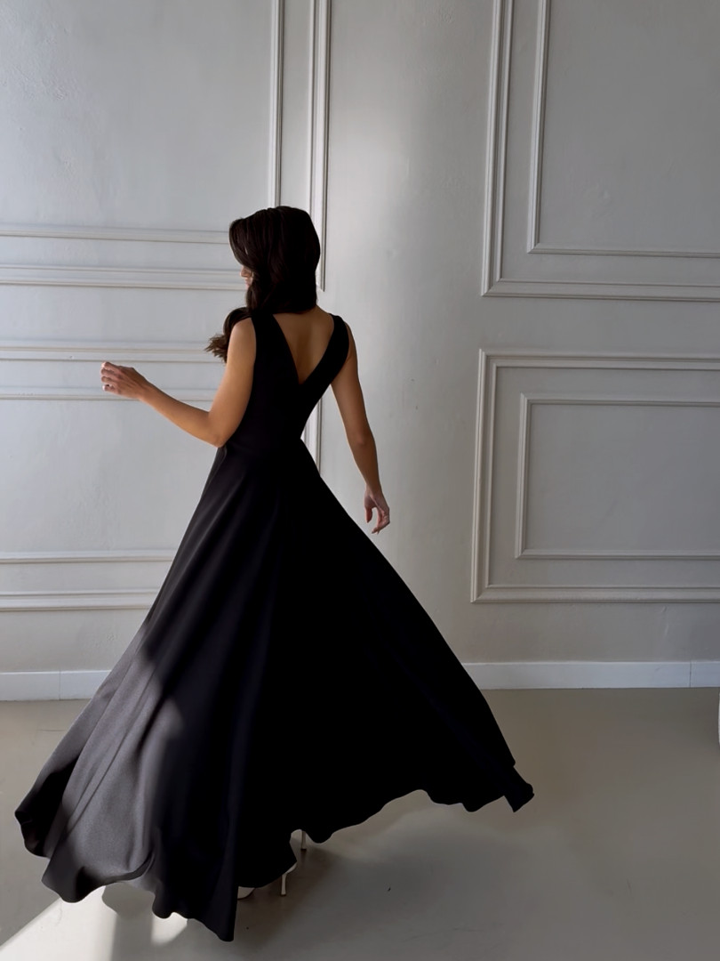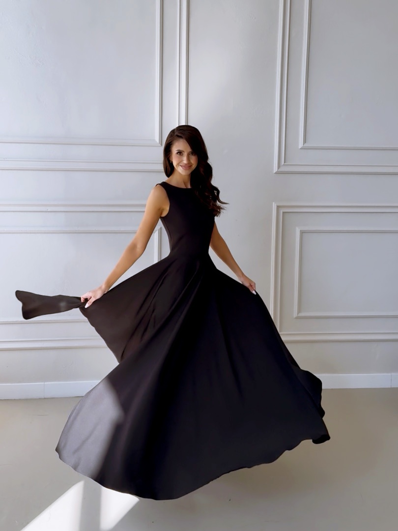 Sensual and elegant maxi length dress, sewn on a wide circle, which gives it a unique lightness and beautifully arranged in motion.