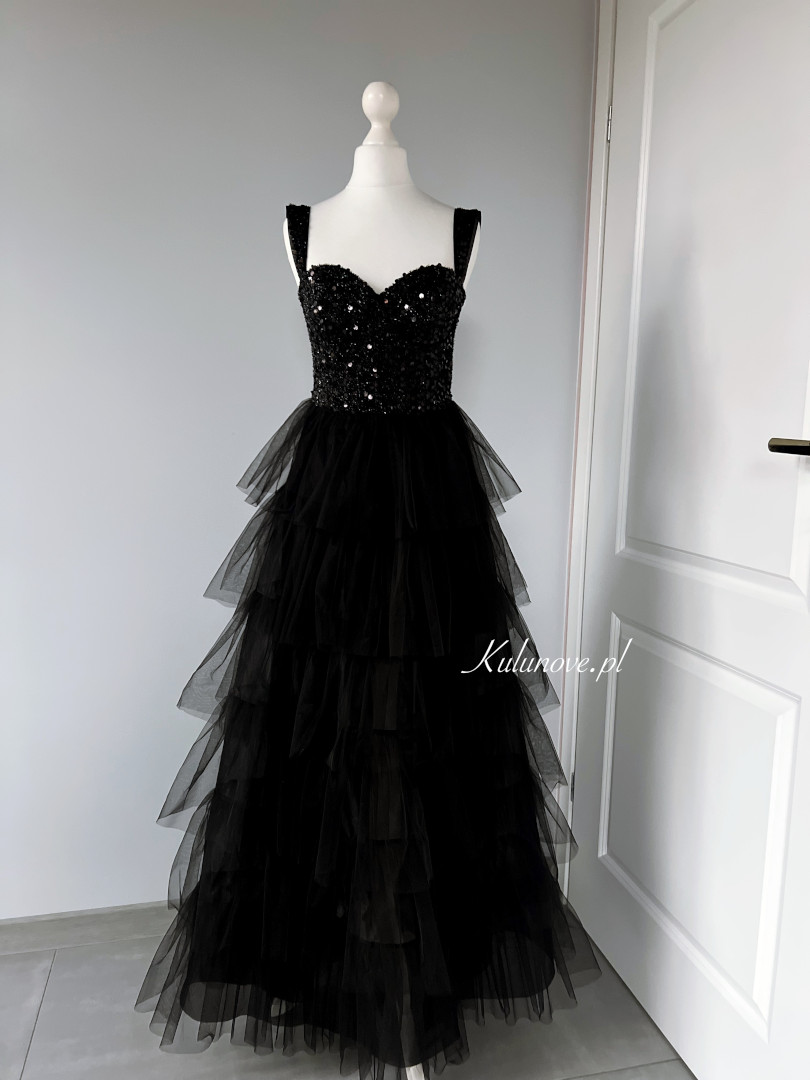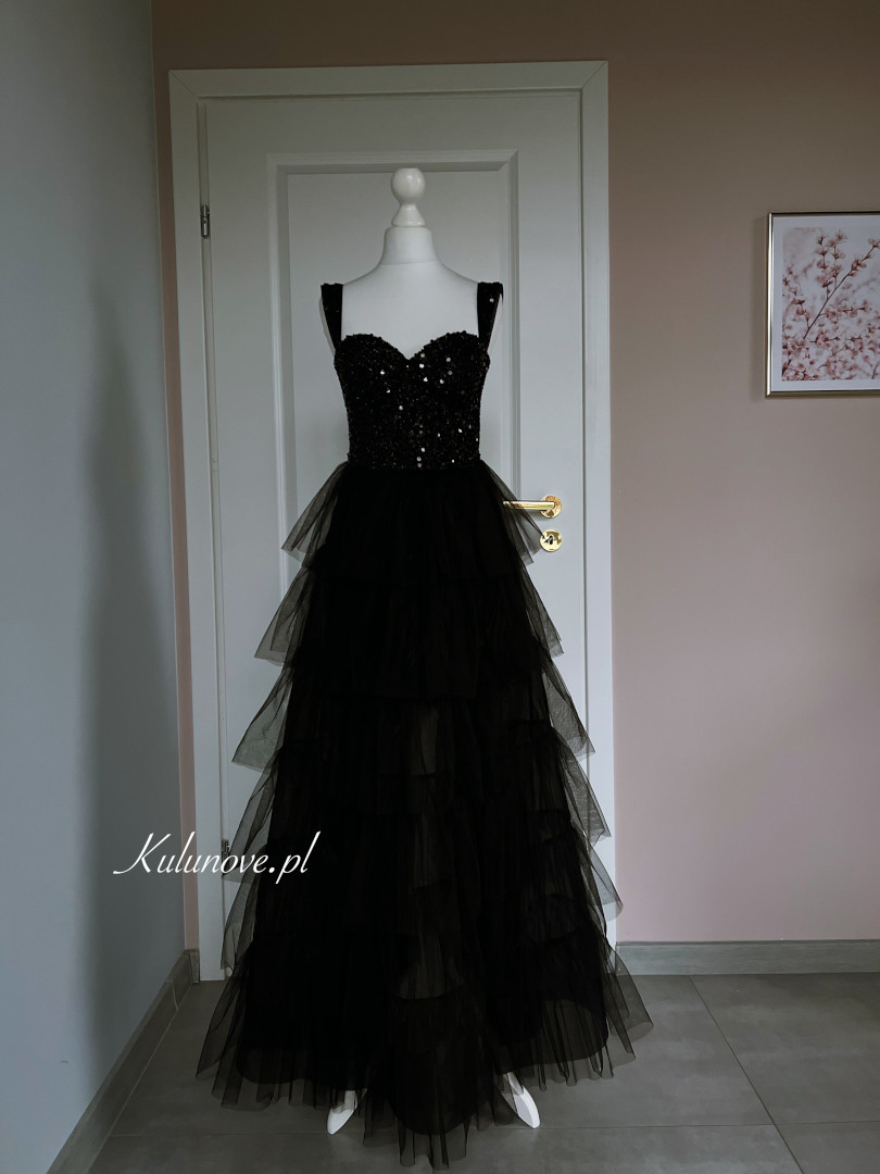 A perfect long gown with a glittering bodice on thicker straps.
