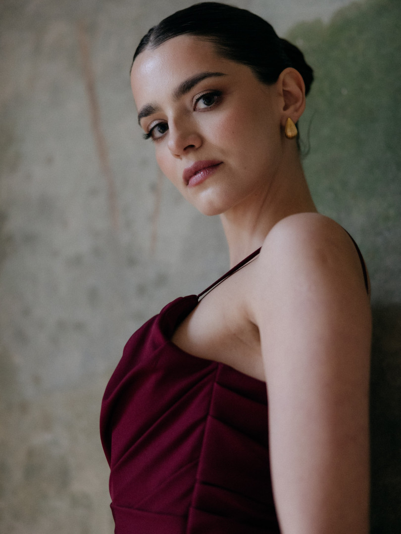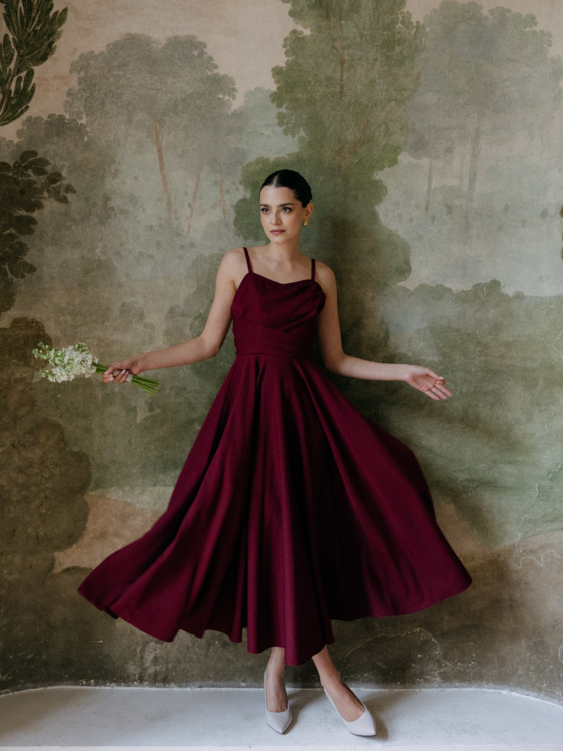 The saturated shade of maroon gives the dress a distinctive look and makes it perfect for special occasions.