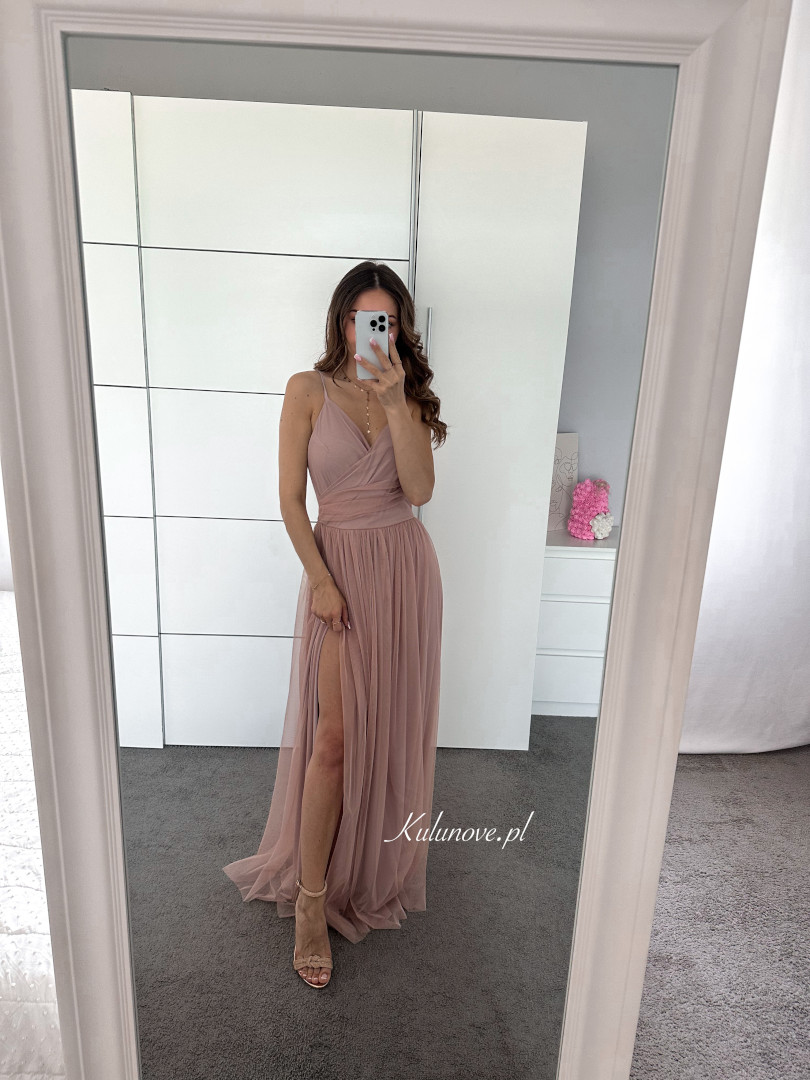 Zuri A355 - powder pink delicate viscose dress made of tulle on thin straps