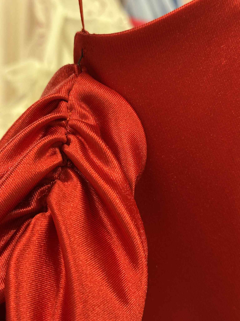 The dress has minor blemishes in the fabric and a detaching shoulder strap.