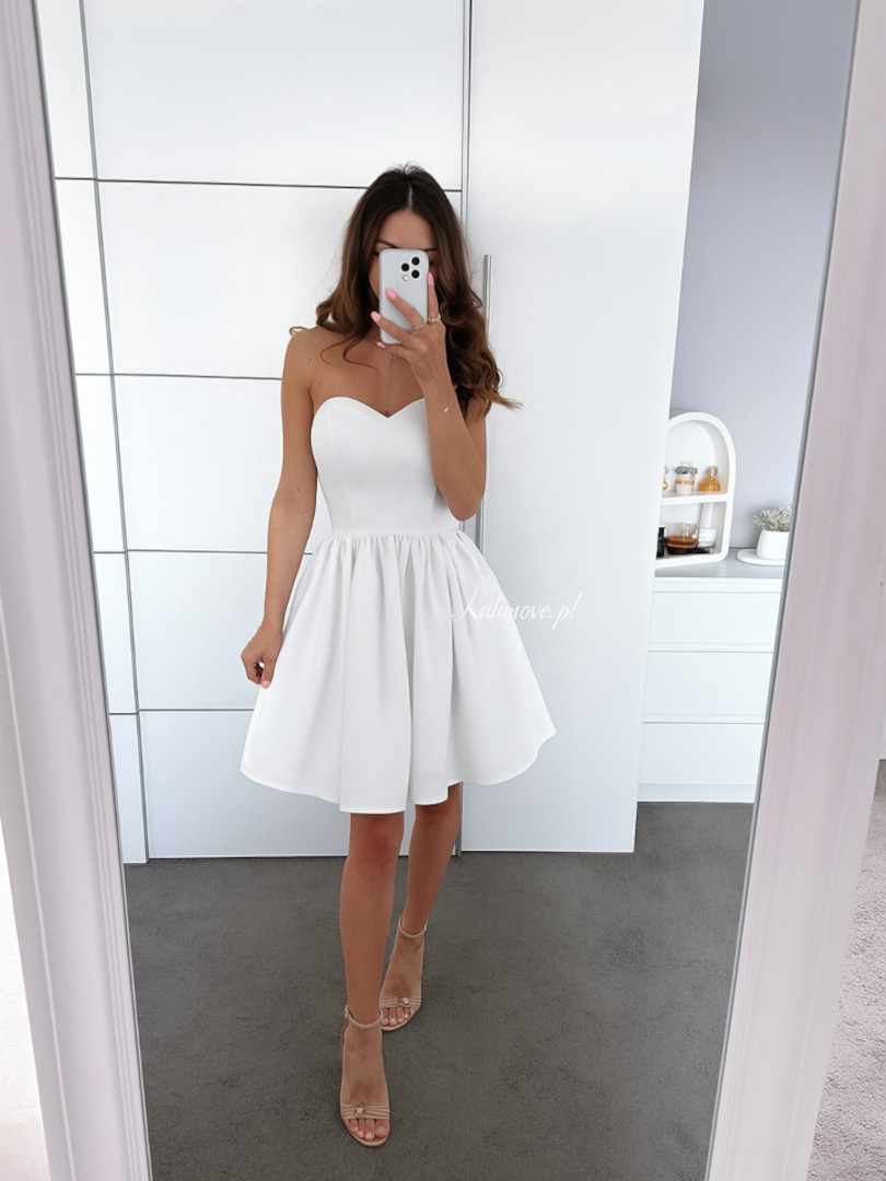 Dolly A379 - ecru mini dress with heart neckline and flared bottom