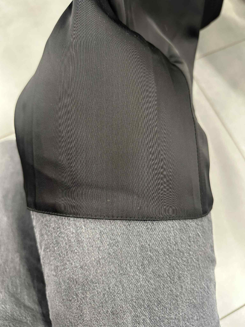 The dress has fabric damage at the very bottom of the skirt from the stilettos.
