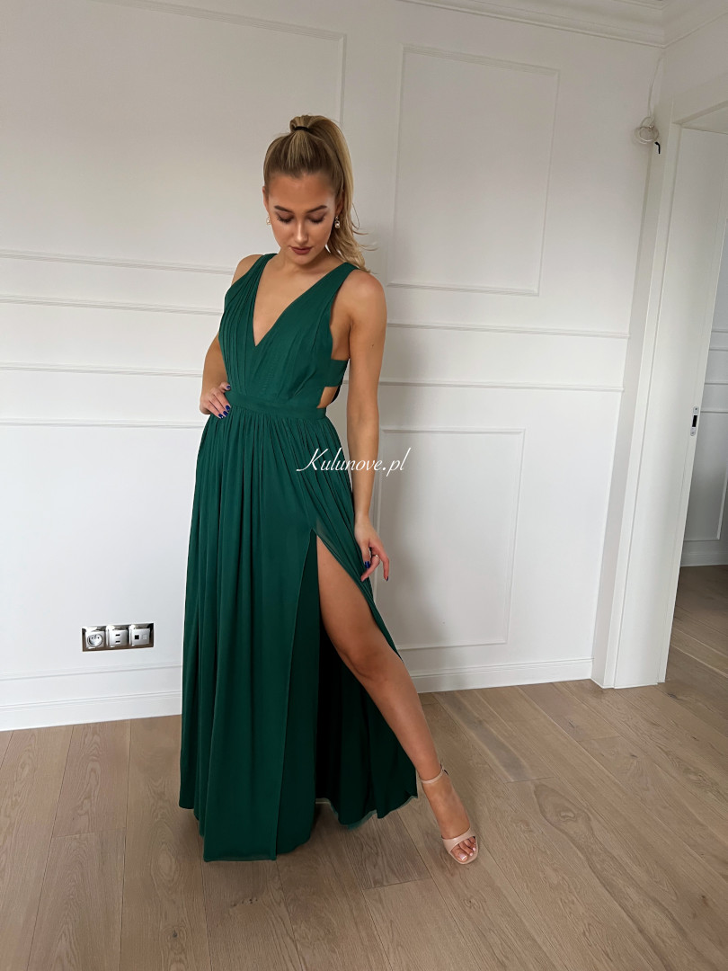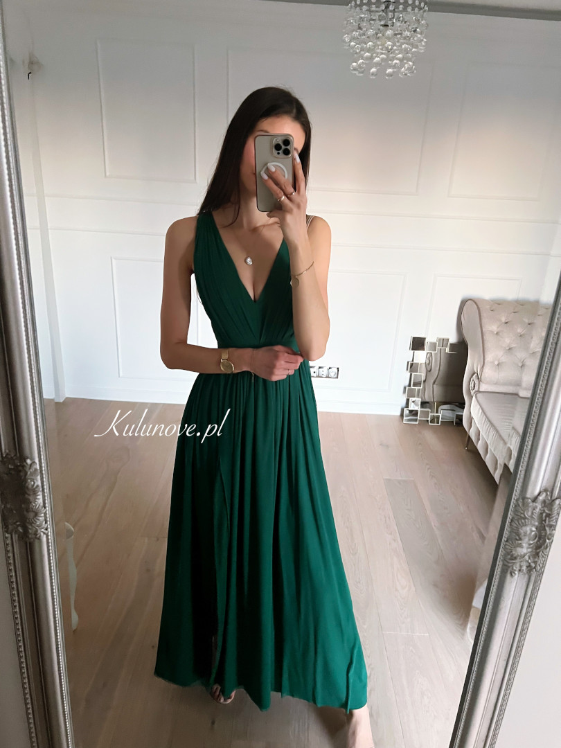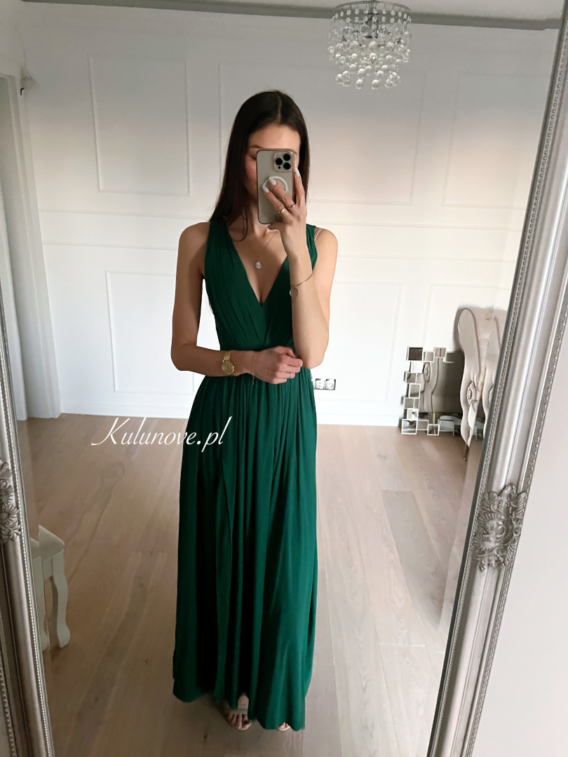 Angelina maxi - maroon dress with falling sleeves sewn on a wide circle Style