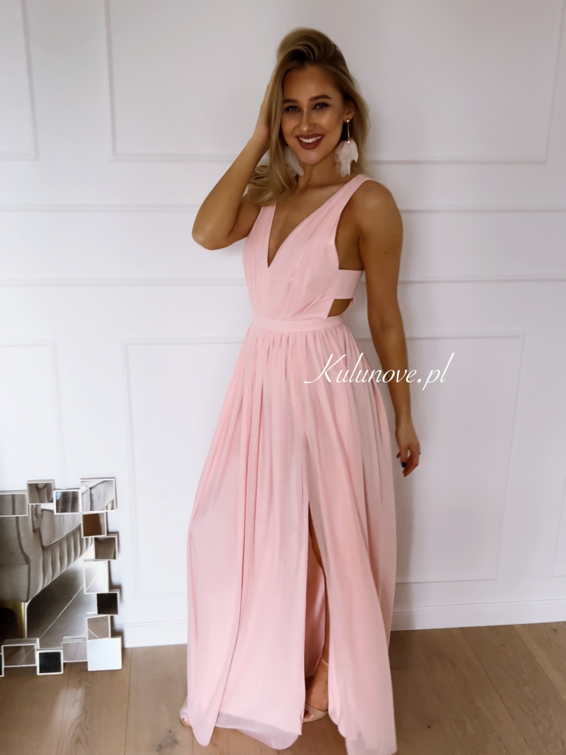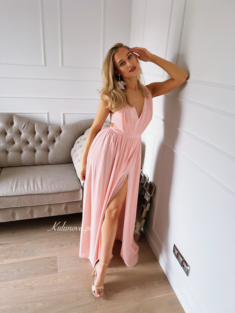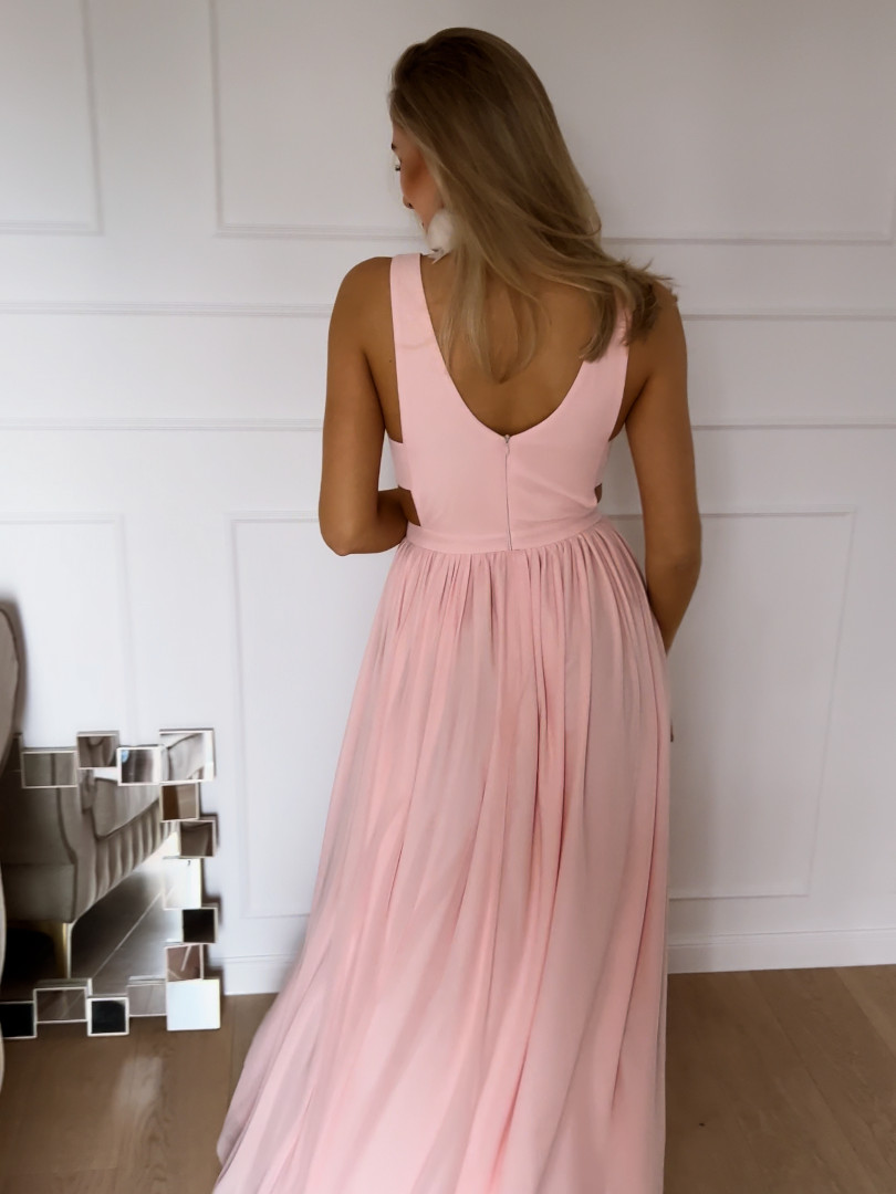Amazing maxi dress made of airy, tulle fabric with a slit on the leg.
