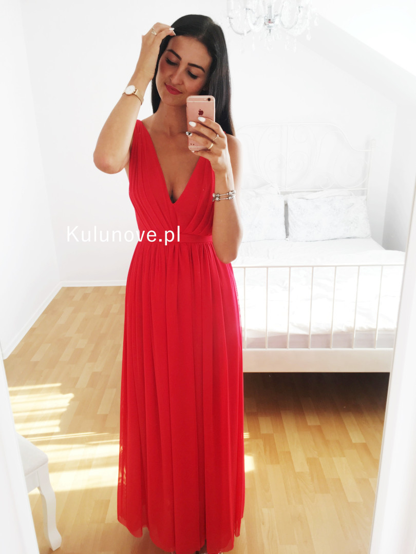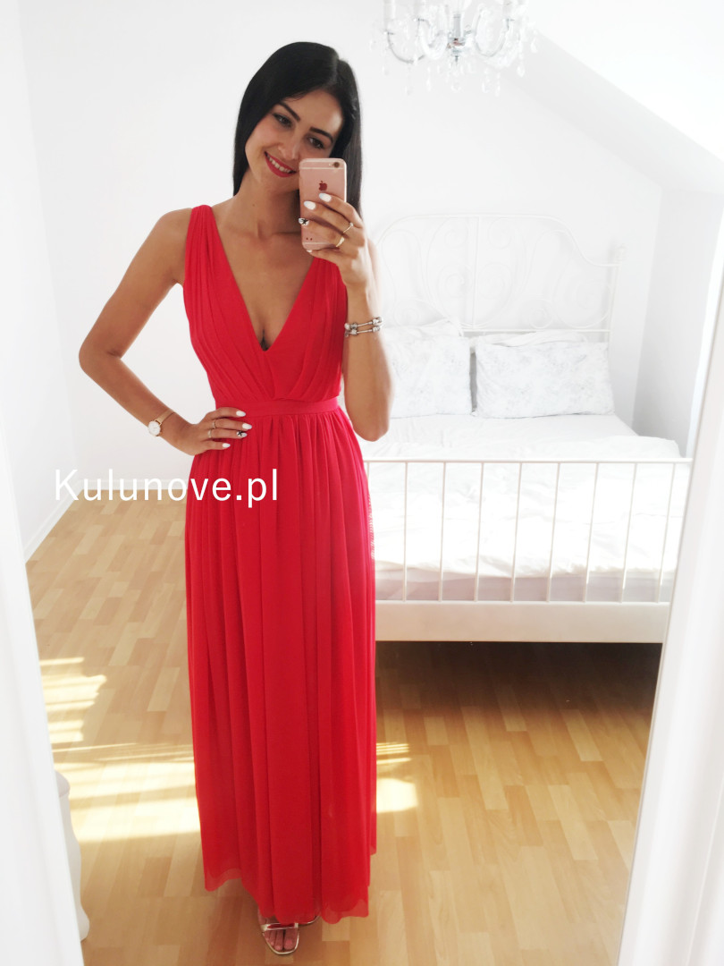 Amazing maxi dress made of airy, tulle fabric with a leg slit.