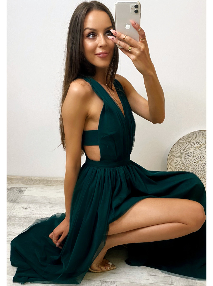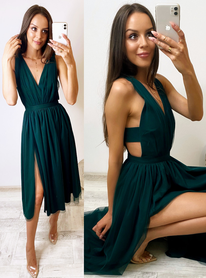 Amazing midi dress made of airy, tulle fabric with a leg slit.
