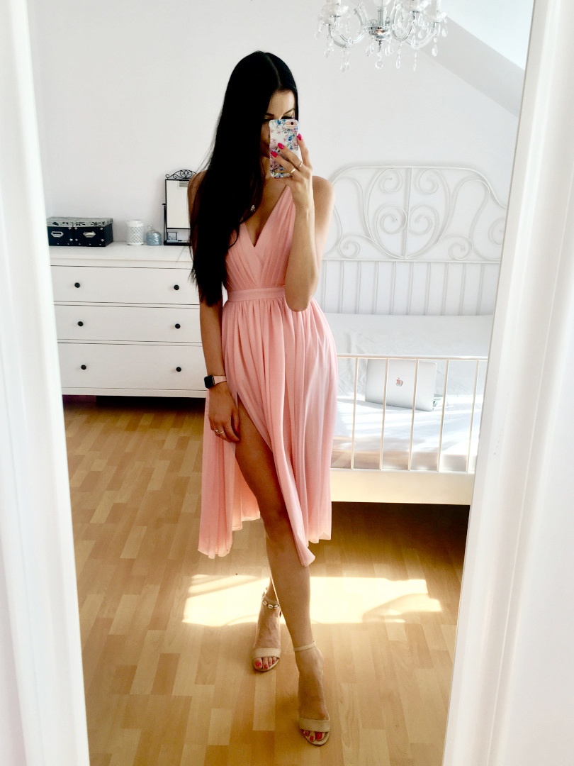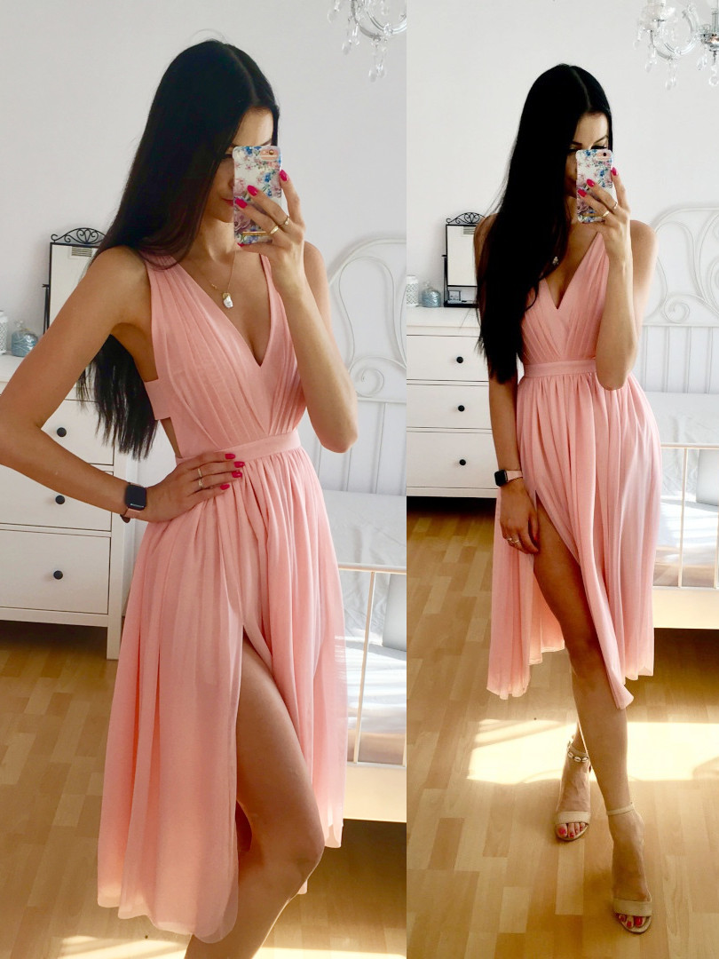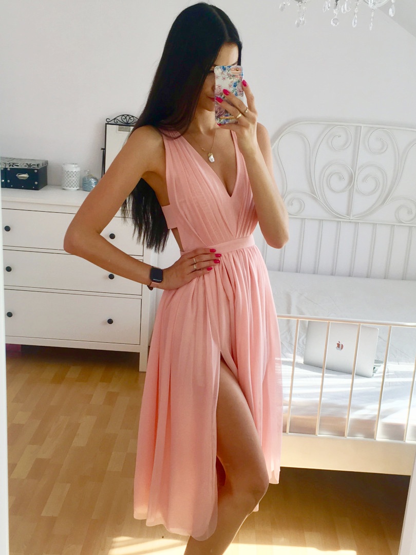 Amazing maxi dress made of airy, tulle fabric with a leg slit.