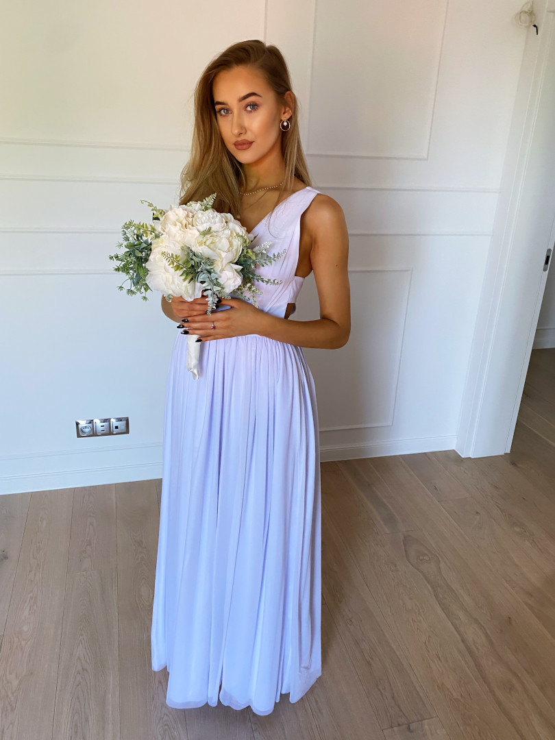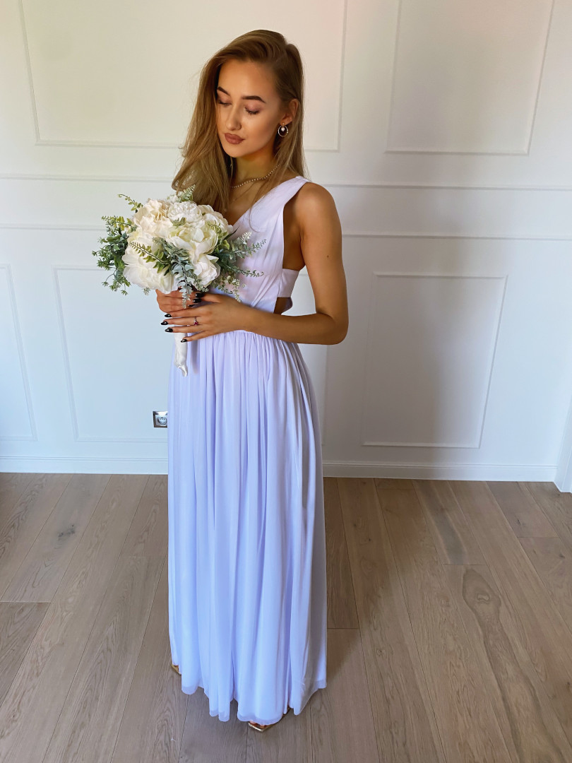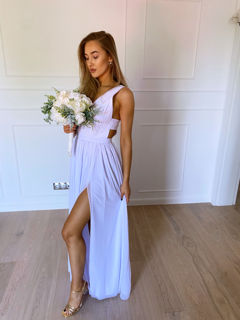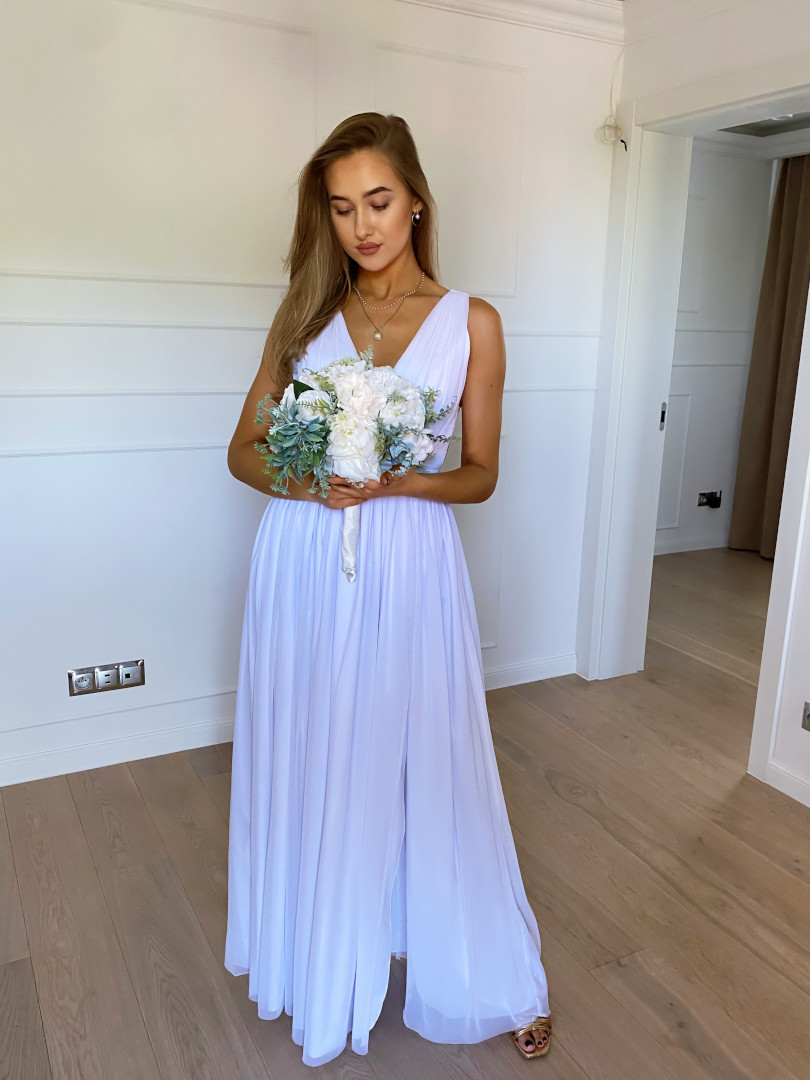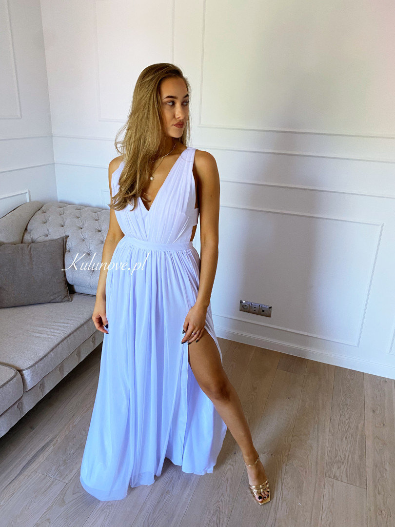 Amazing maxi dress made of airy, tulle fabric with a leg slit.