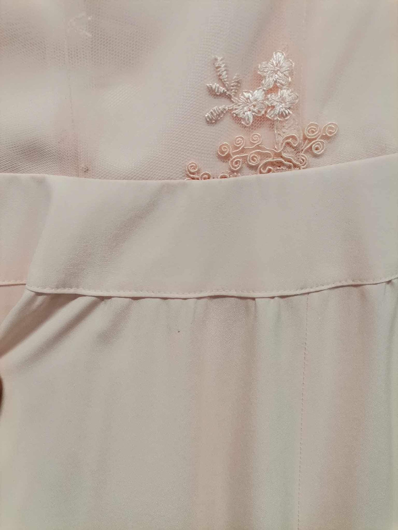It comes in a delicate powder pink color, which gives it a romantic touch.