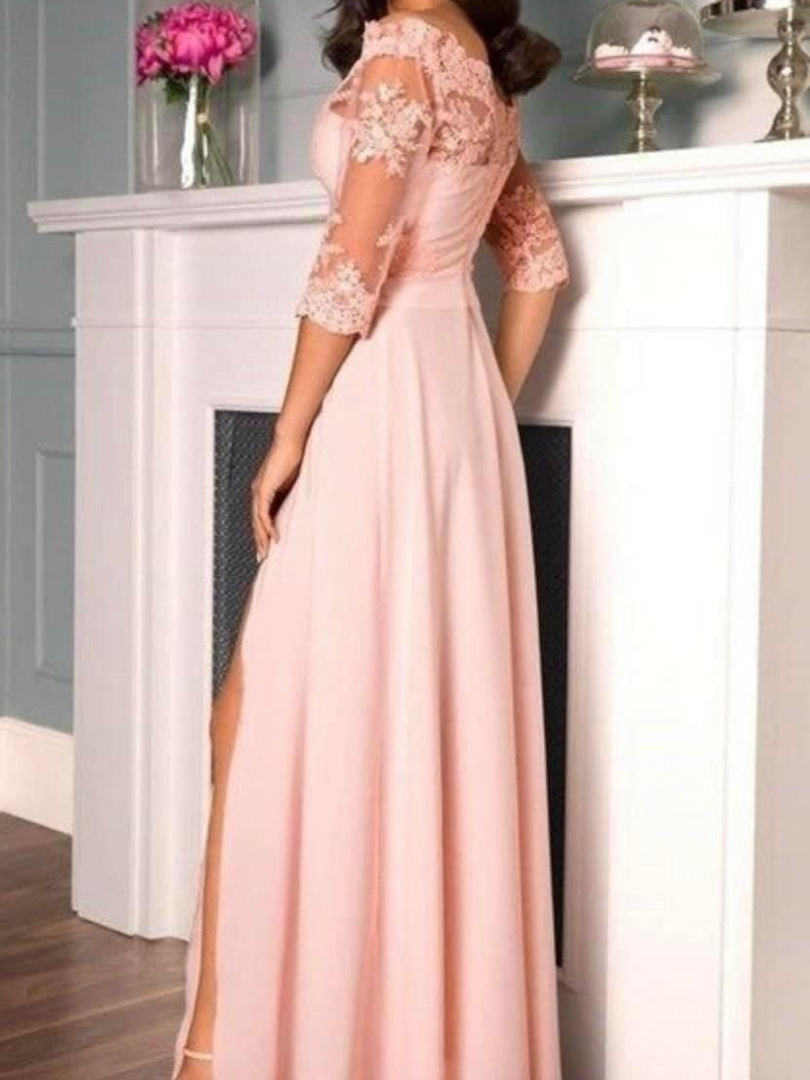 Pink maxi dress with 3/4 sleeves and Spanish cut No. 559