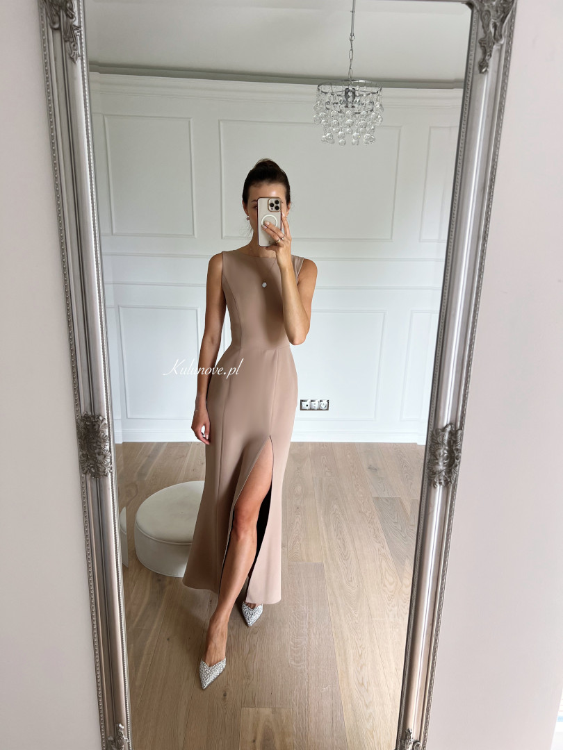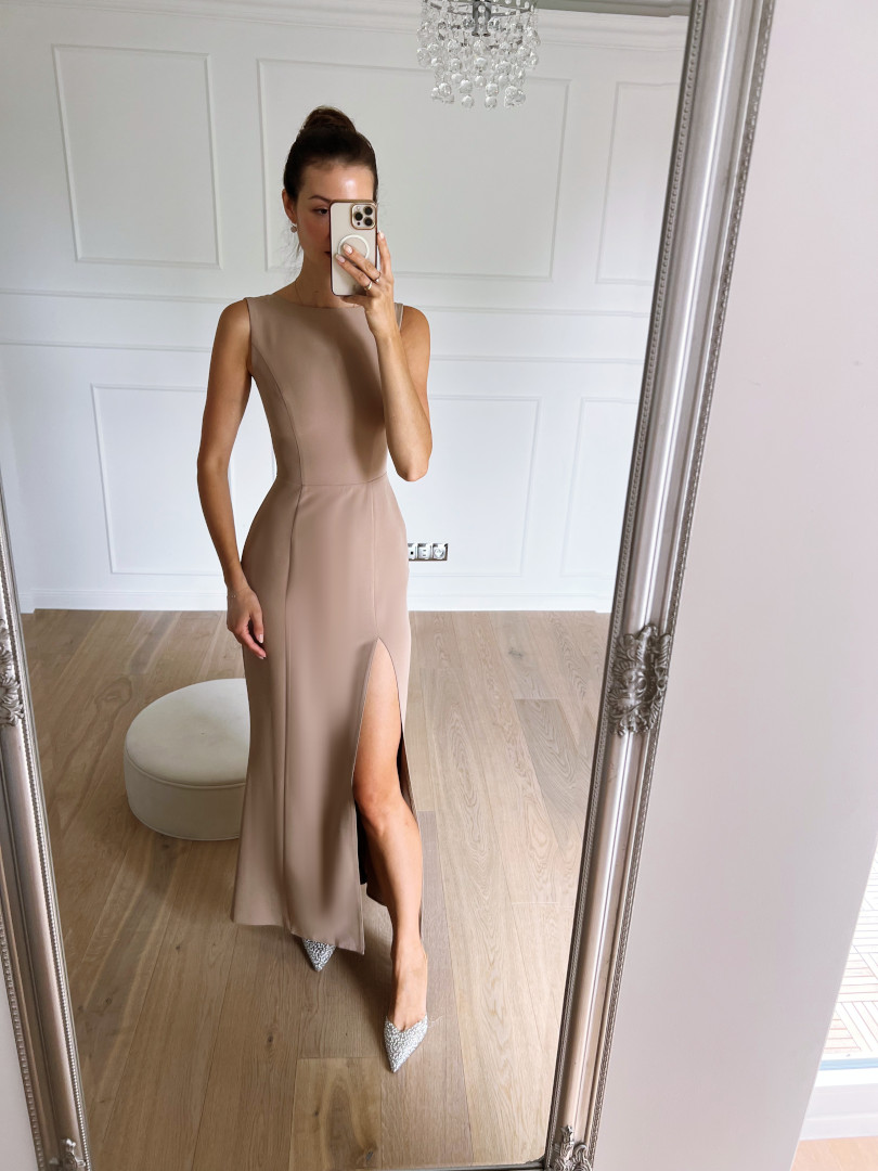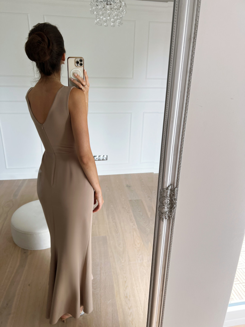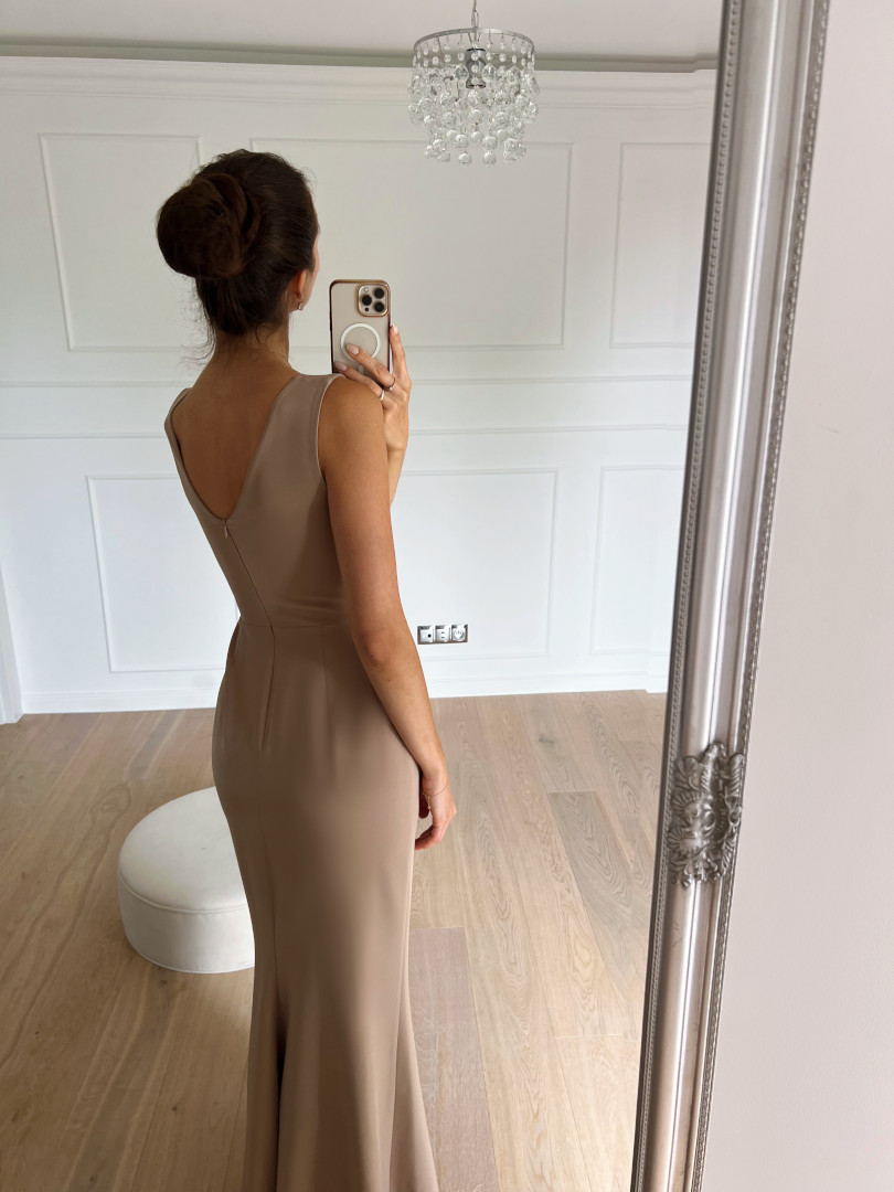 Very simple, long dress in a fashionable cappucino color.