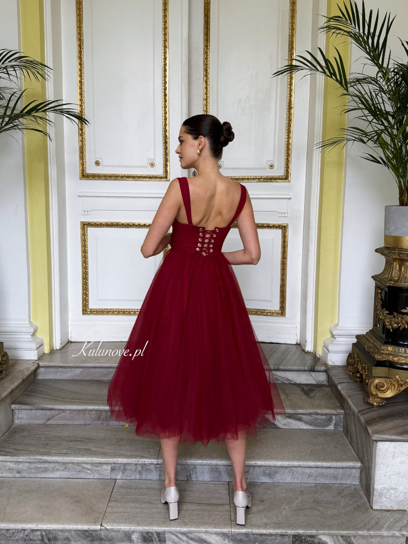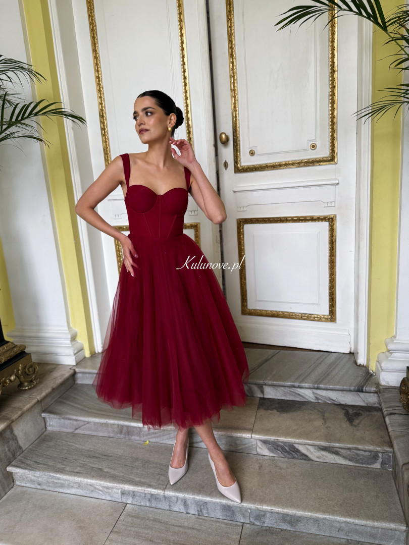 The straps give the dress a subtle, romantic touch, and the burgundy color attracts attention.