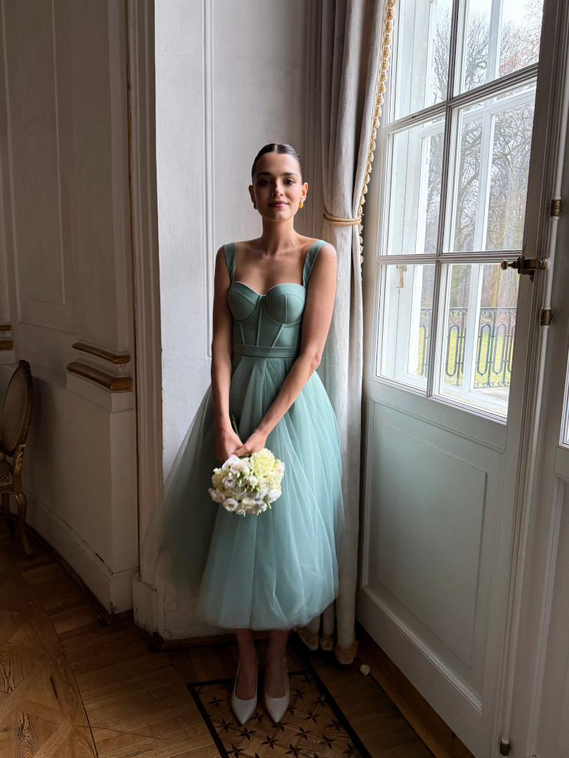 It has a flared bottom, adding volume and airiness to the whole creation.