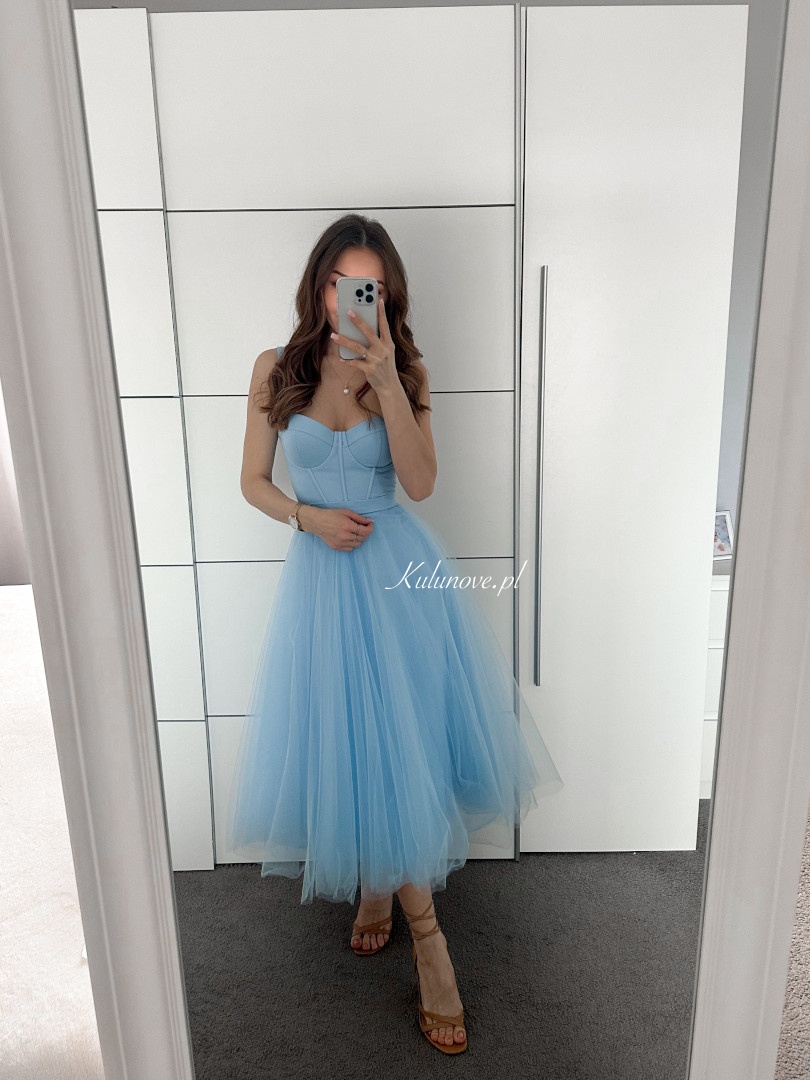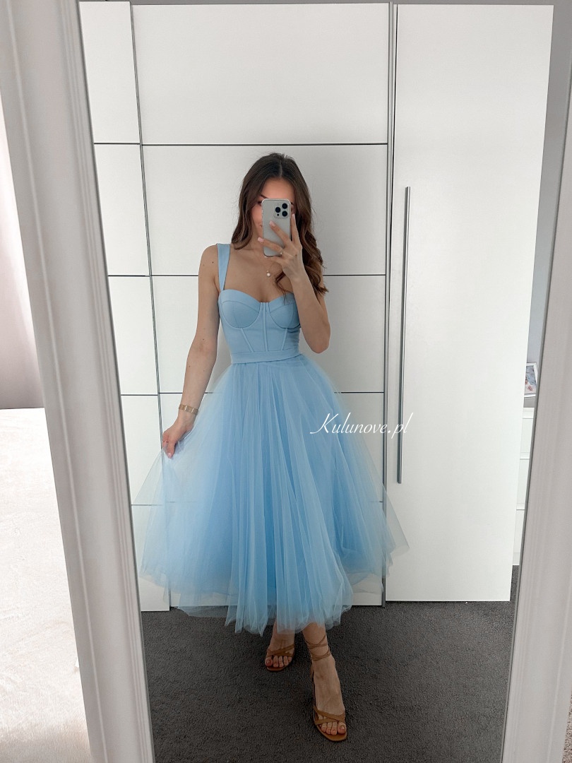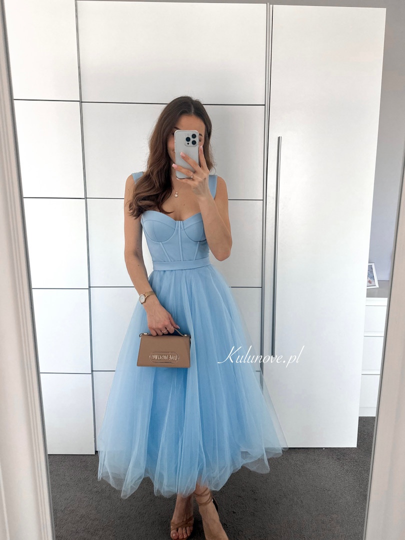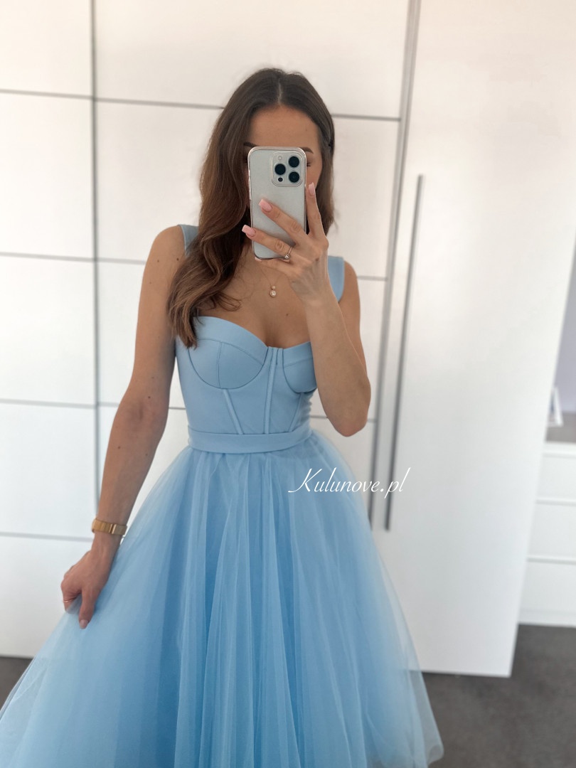 The upper part of the dress is maintained in the style of a corset, perfectly modeling the silhouette.
