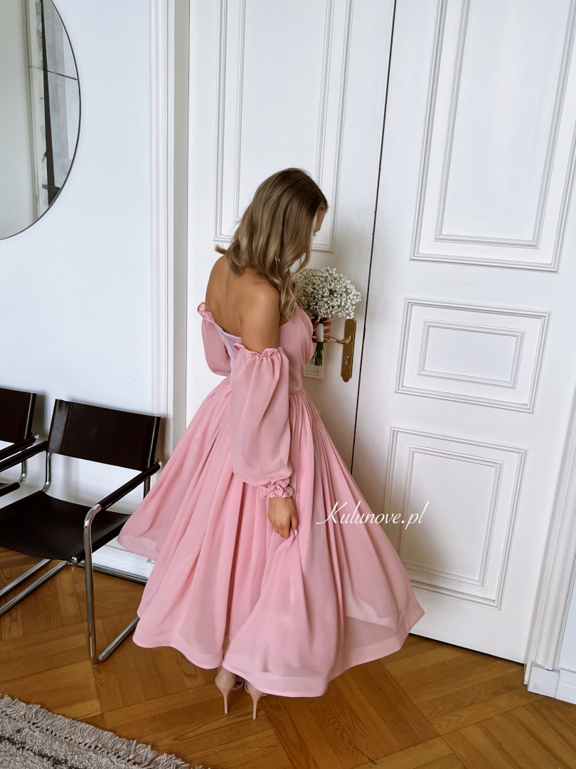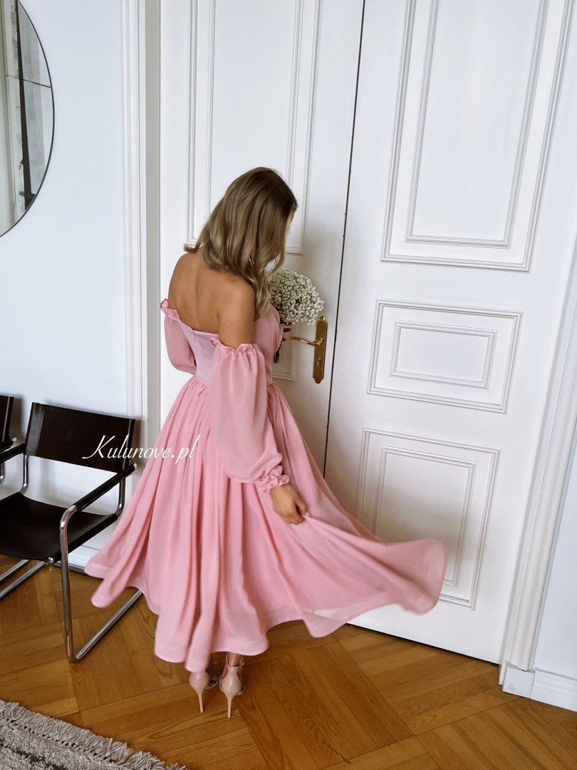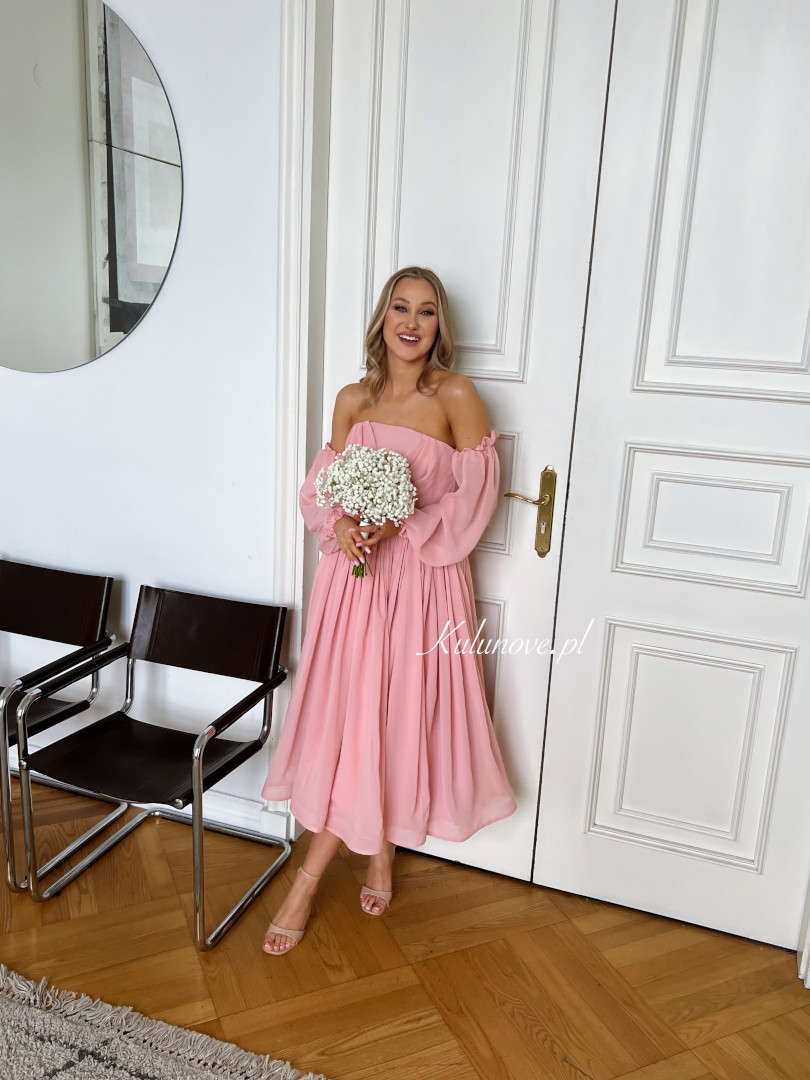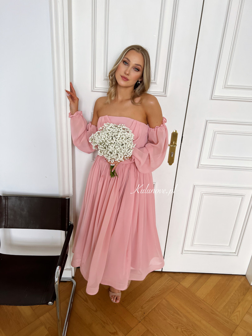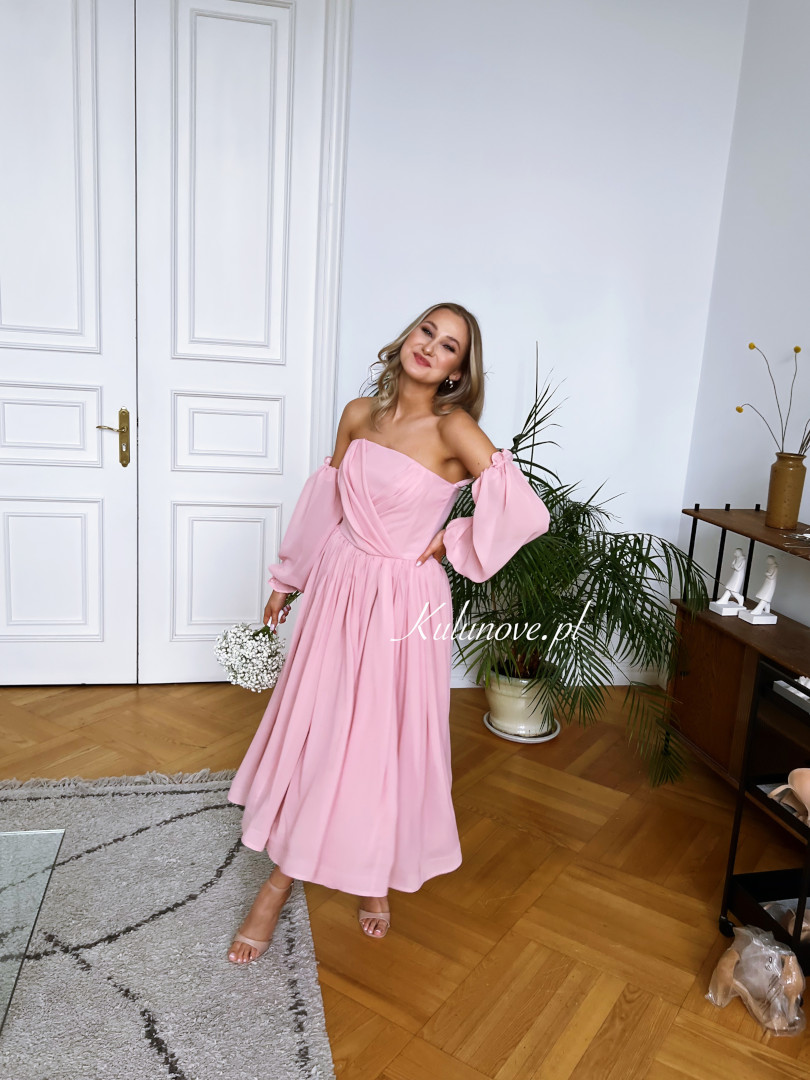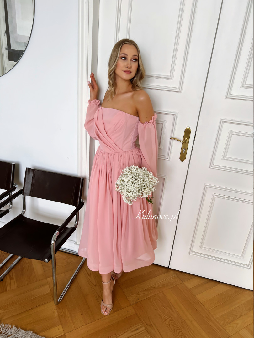 Lianna - chocolate midi dress with pleats and long sleeve V neckline Bridesmaids Plus Size Dresses
