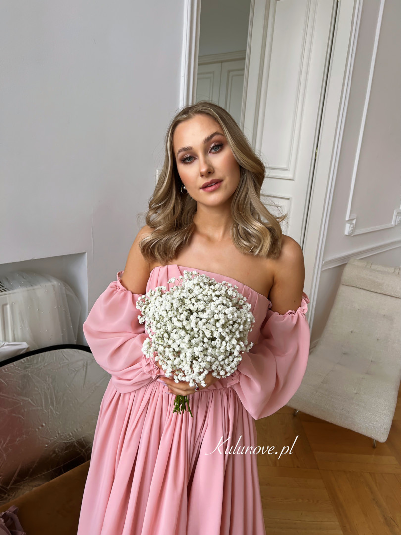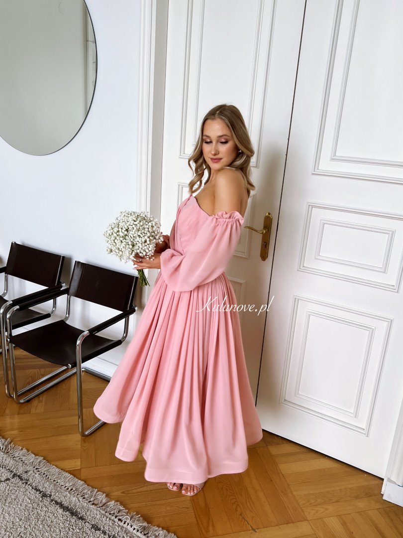Angelina maxi - red flared envelope maxi dress with open shoulders Style