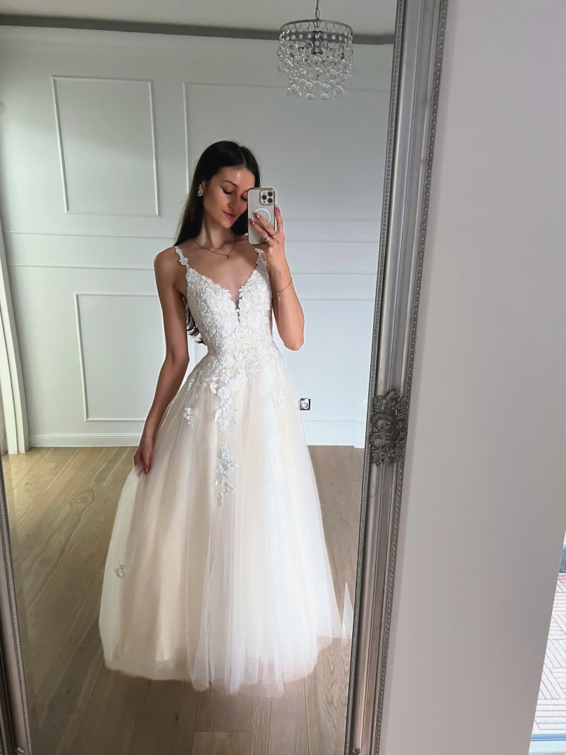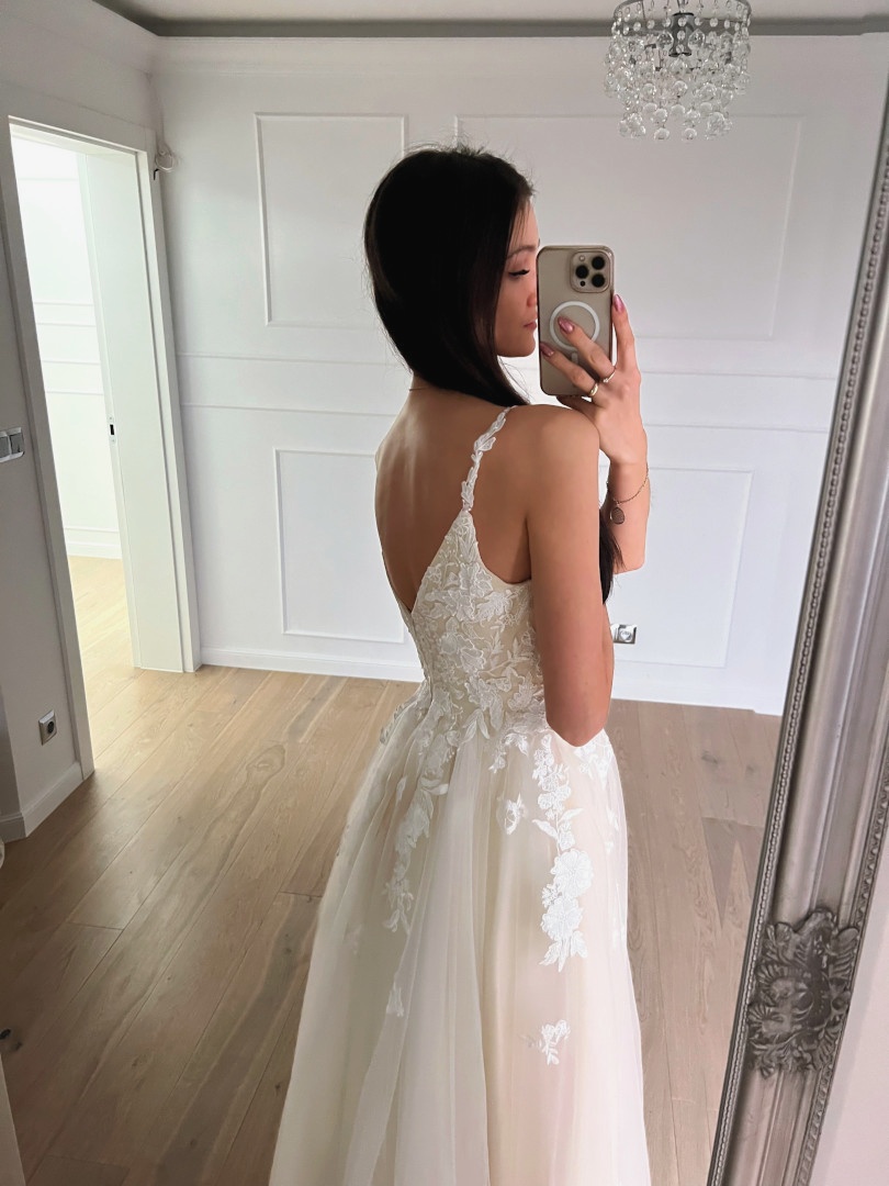 Please take special care when fastening the dress. We suggest that you make sure that the tulle is evenly aligned and not too close to the zipper before fastening. Attention to this detail will help avoid accidental damage and prolong the life of the product.