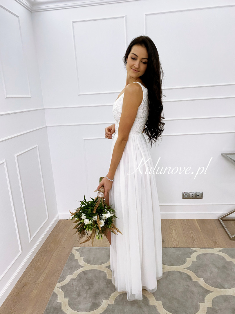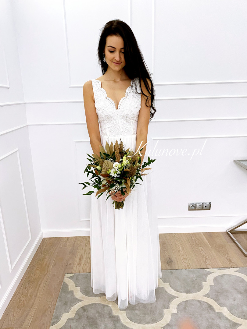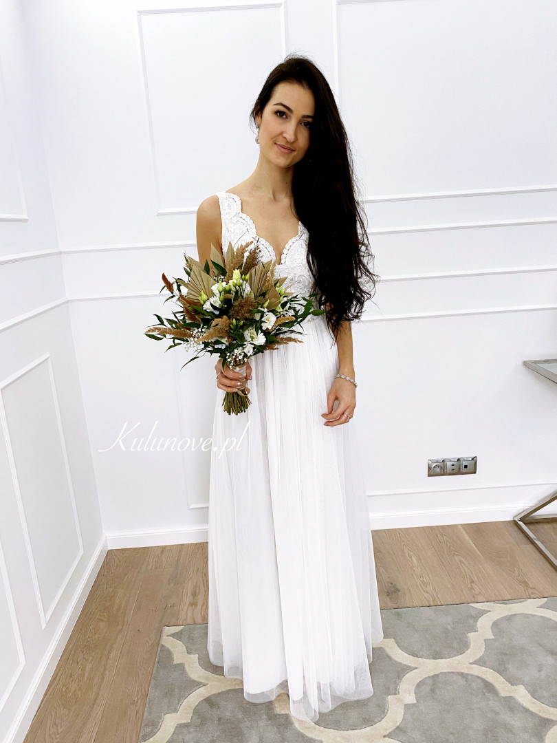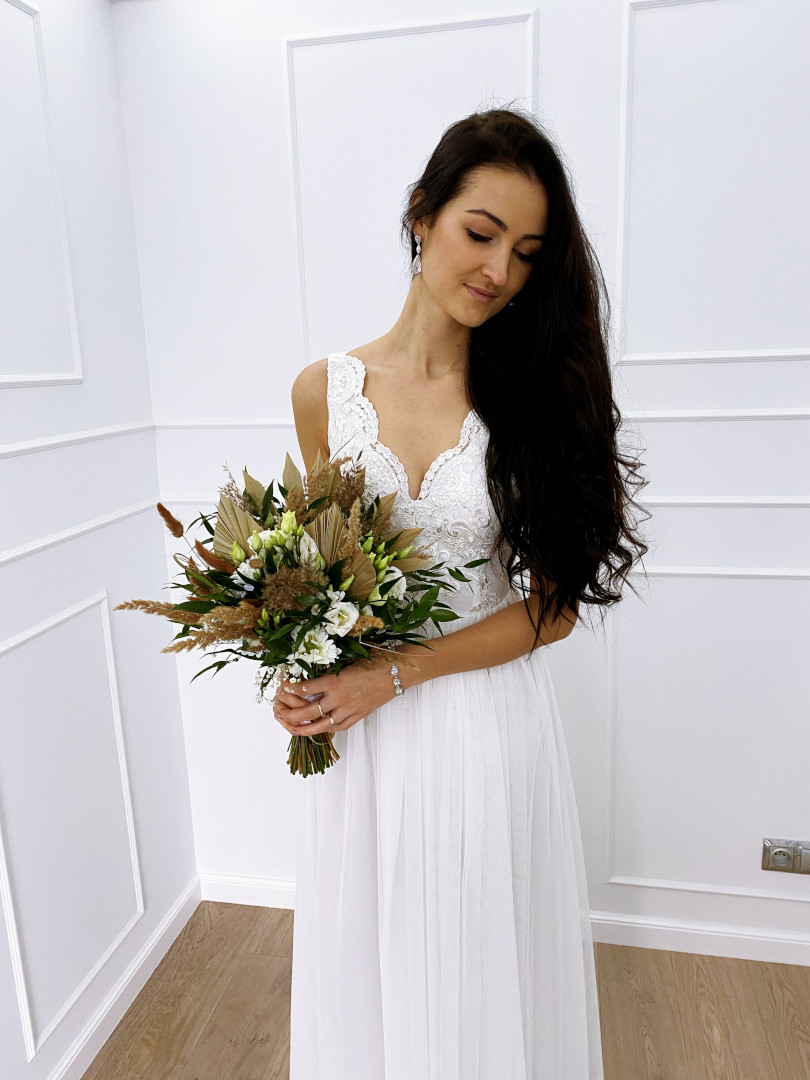 Please take special care when fastening the dress. We suggest making sure the tulle is evenly aligned and not too close to the zipper before fastening. Attention to this detail will help avoid accidental damage and prolong the life of the product.