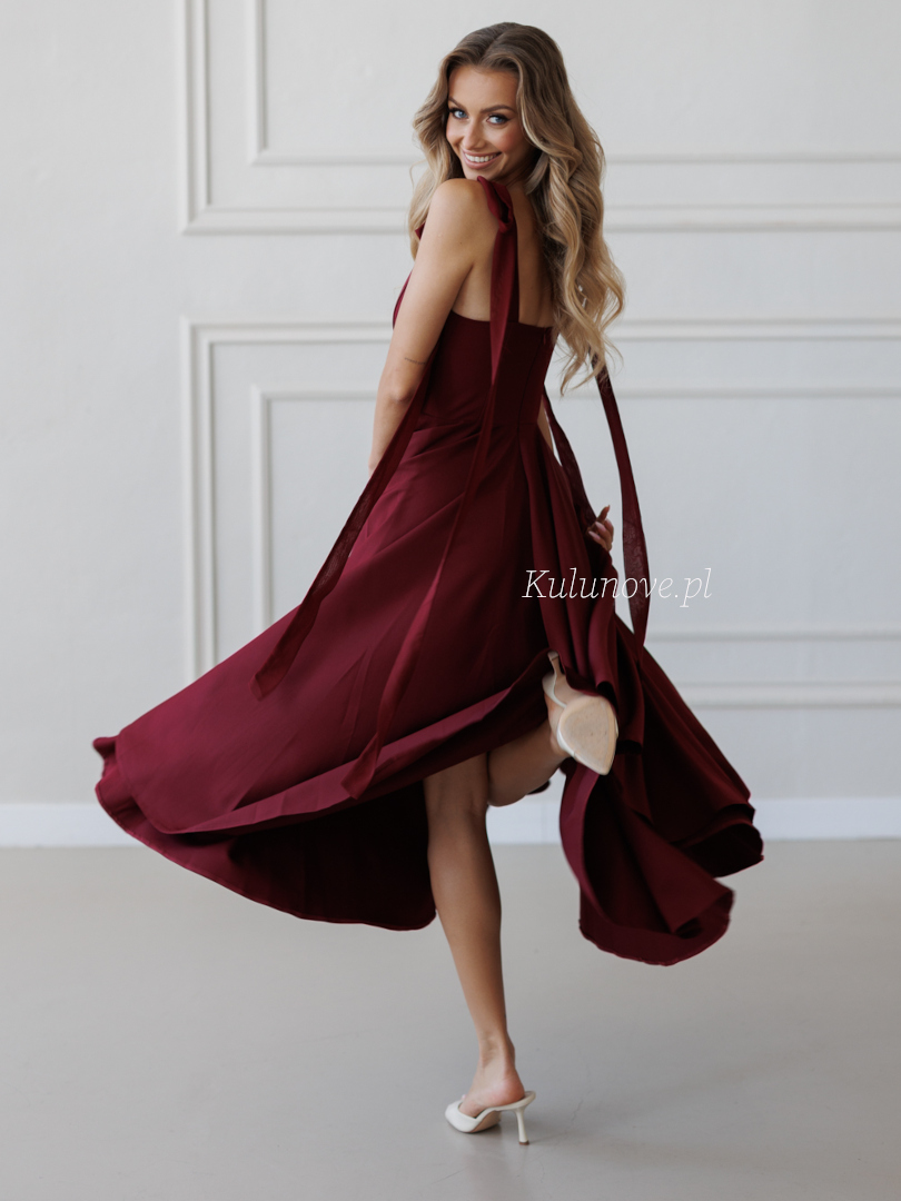 Scarlet - elegant burgundy midi dress with romantic neckline
