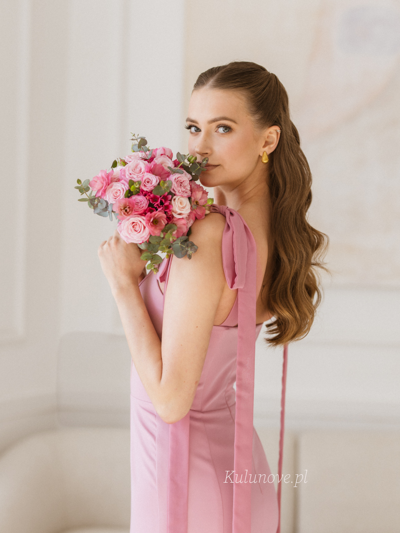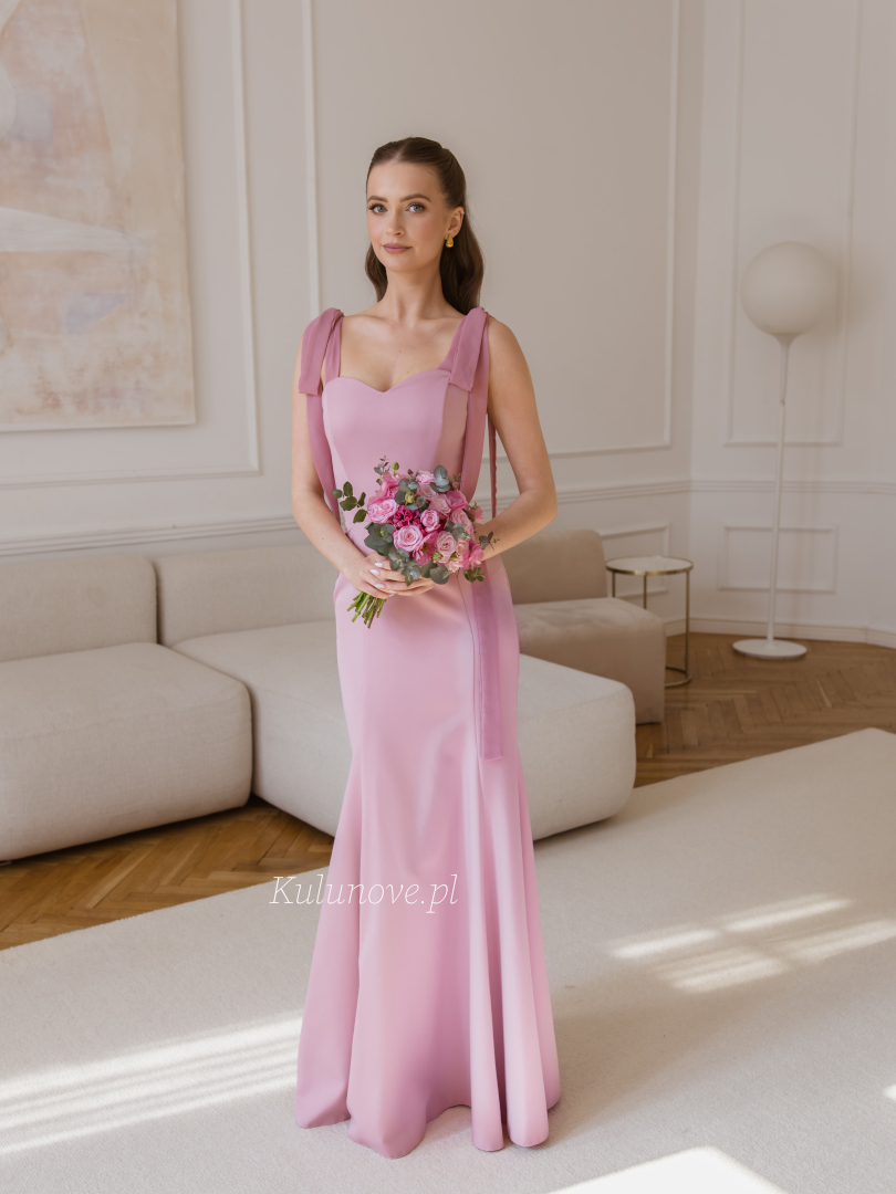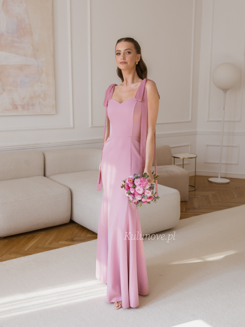 Romantic fishtail dress in a shade of dirty pink, delighting with a subtle heart neckline.