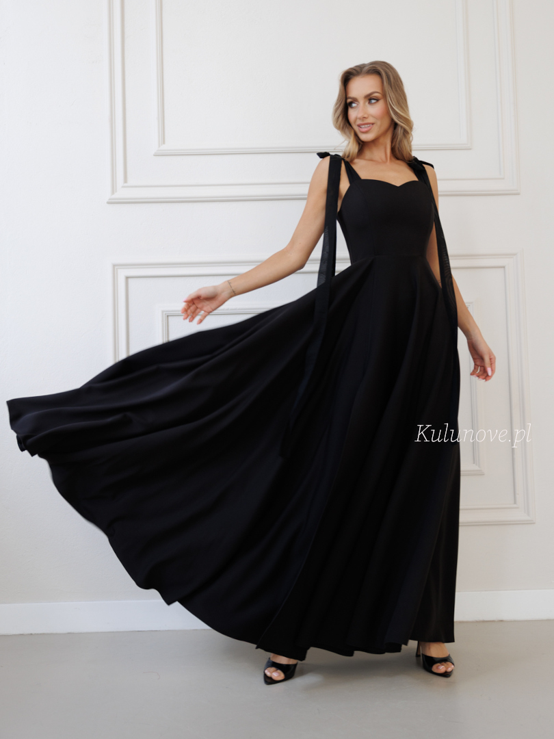The bottom of the dress flares out towards the bottom, creating an A-line effect, which gives it a graceful look.