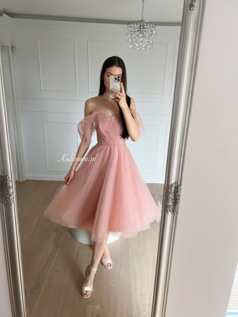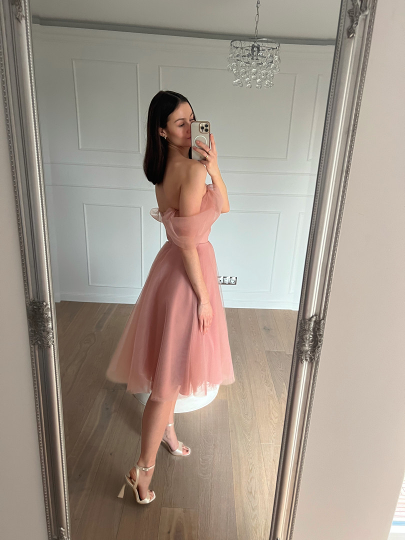 Selena - light pink tulle midi dress with falling sleeves