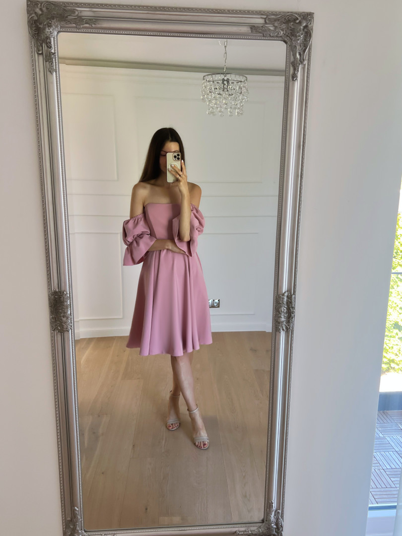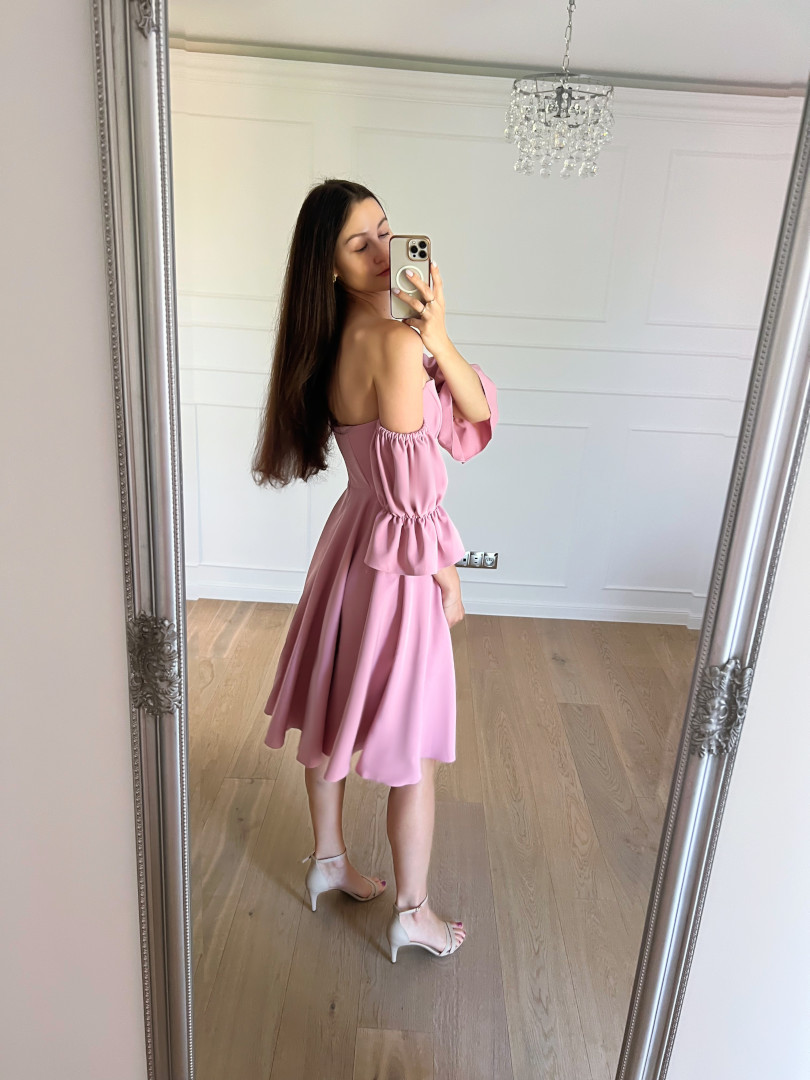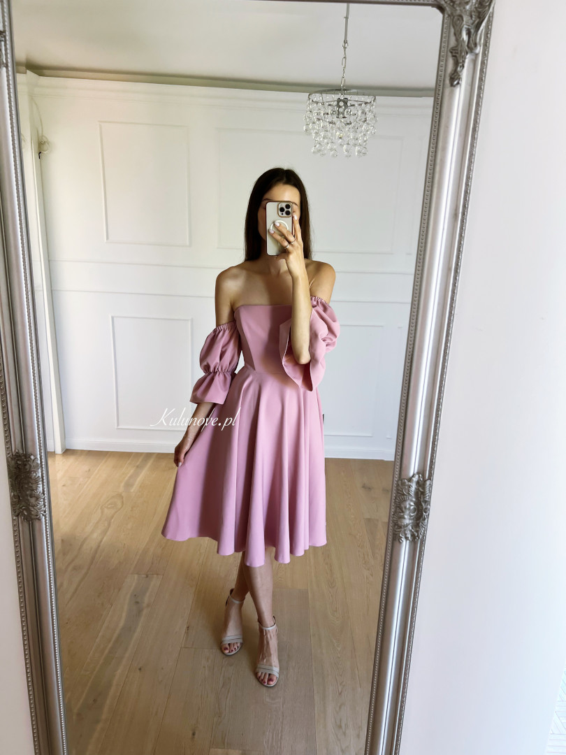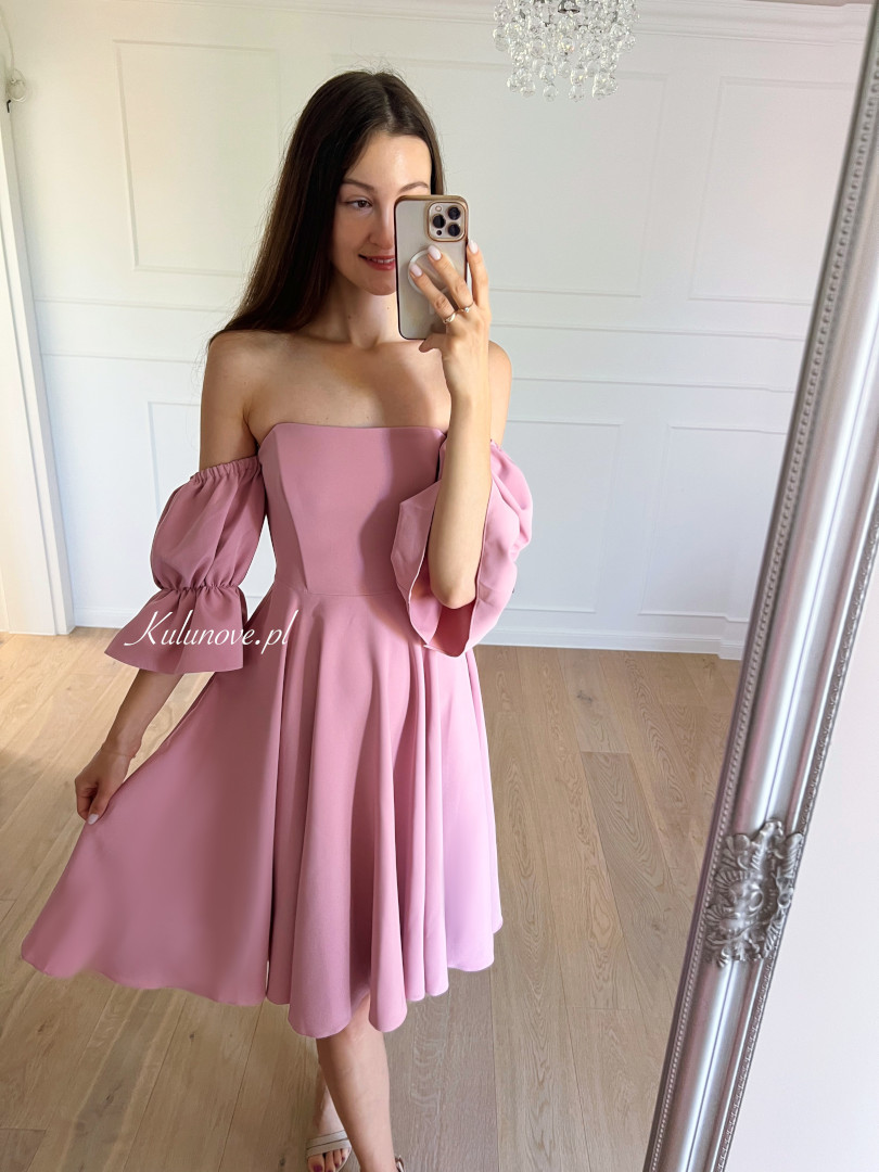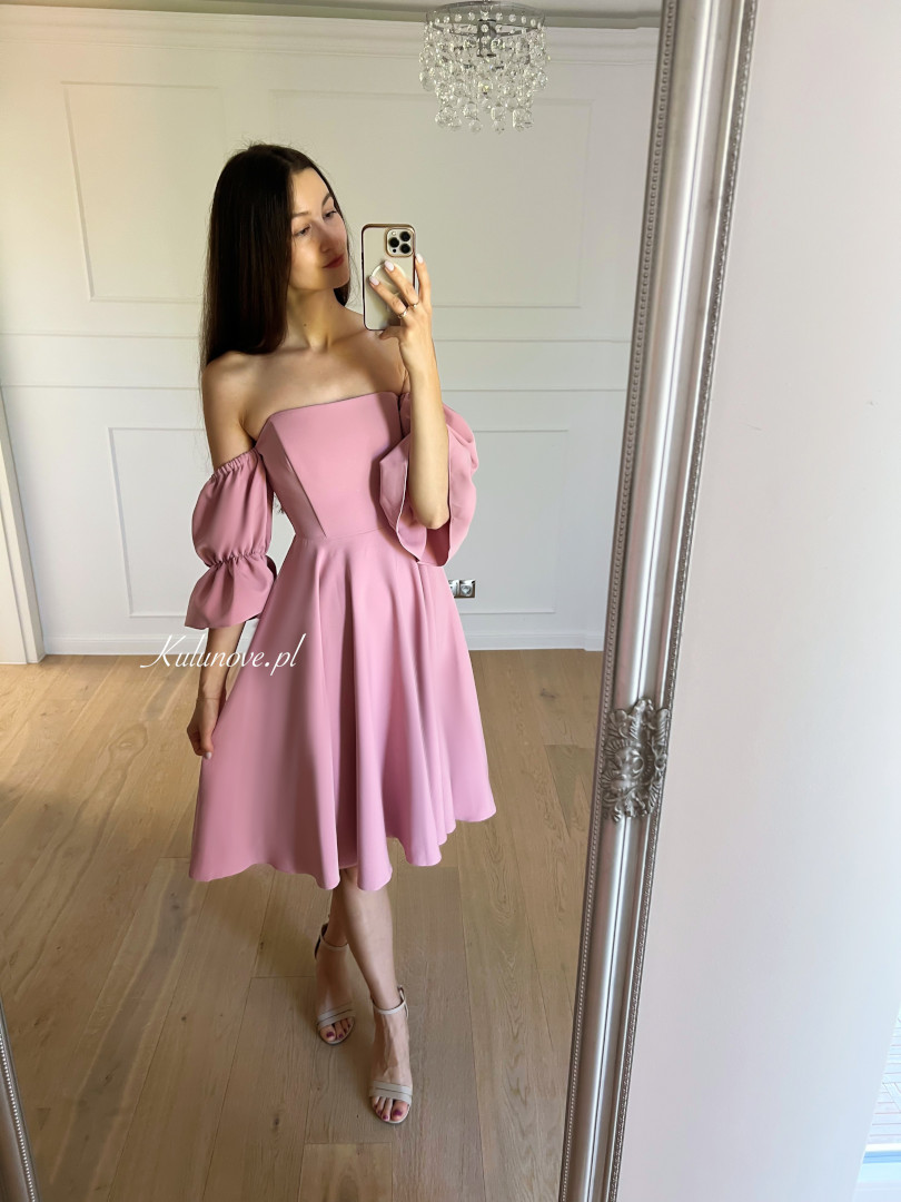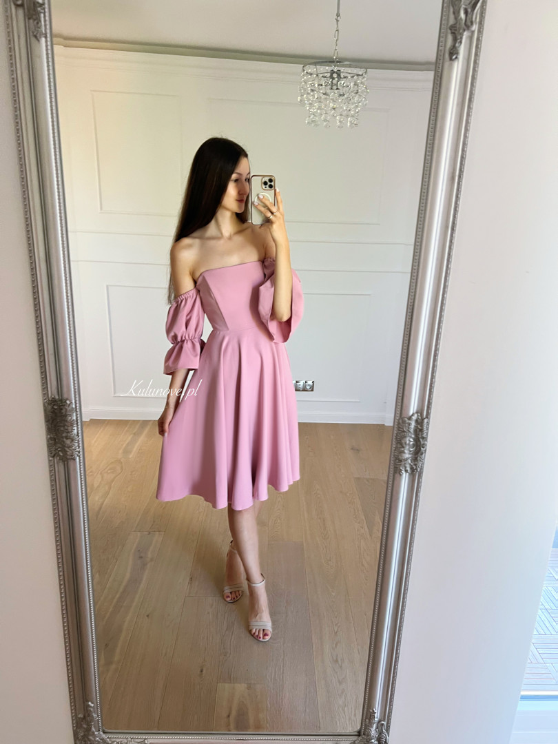 Seniorita midi - dark pink dress with falling decorative sleeves