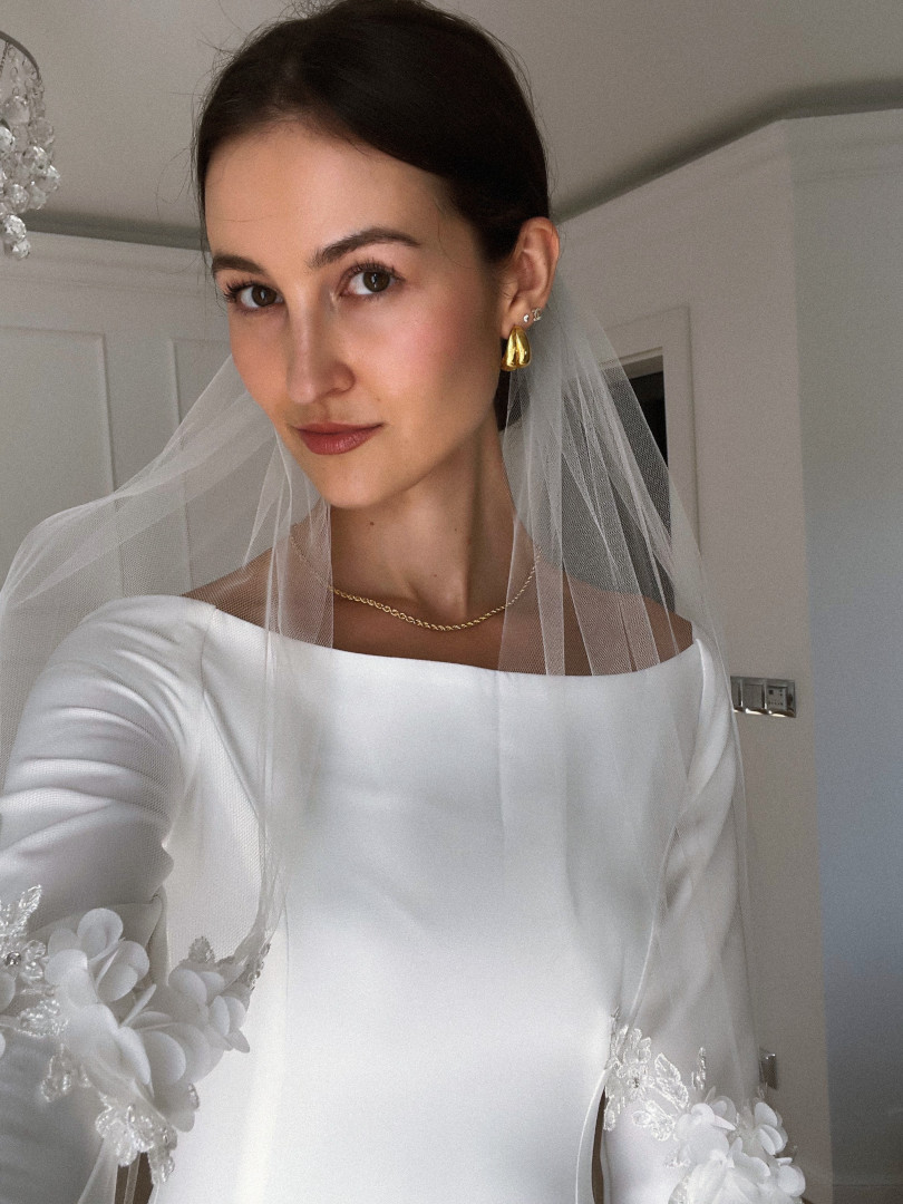 This veil will match in color with most of our models in ivory, cream and ecru.