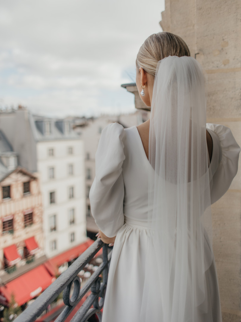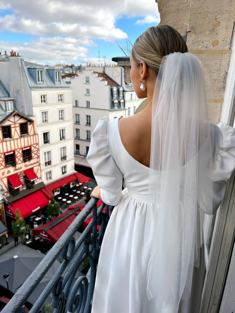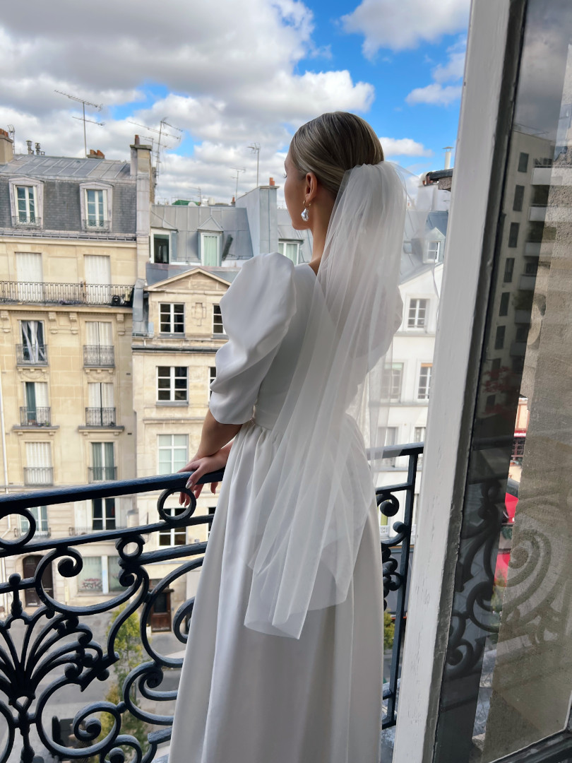 Short wedding veil, delicately decorated with beads
