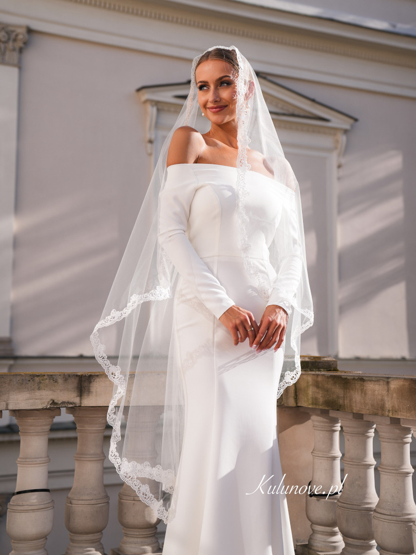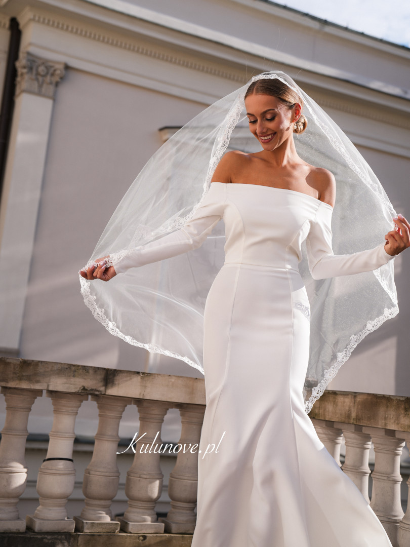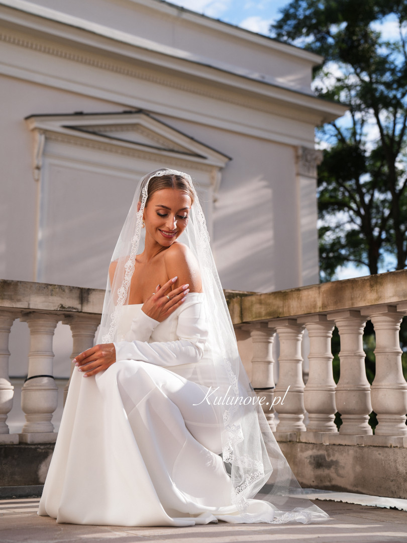 The veil is made of delicate, lightweight tulle, which falls freely and beautifully arranged on the silhouette.
