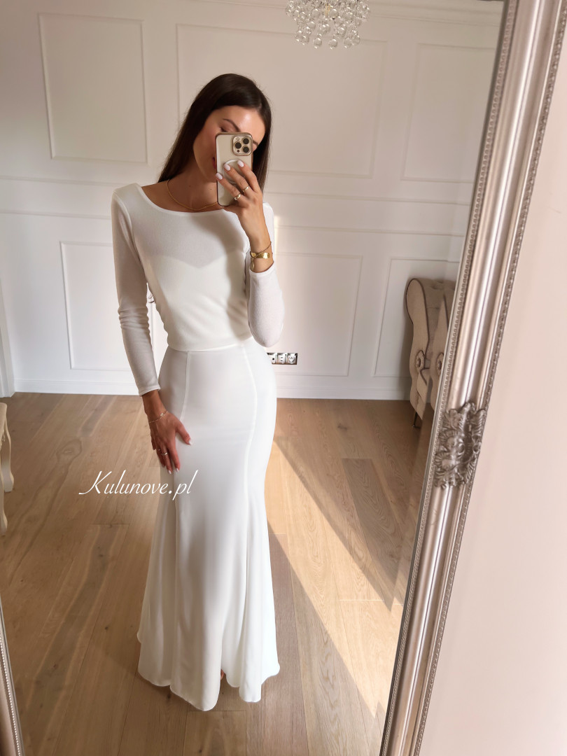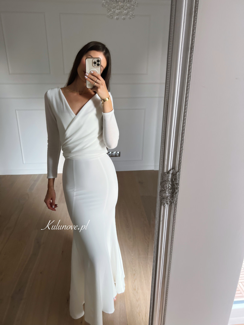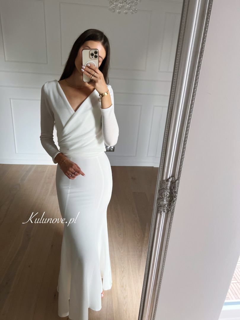 This garment will match in color with most of our models in ivory, cream and ecru.