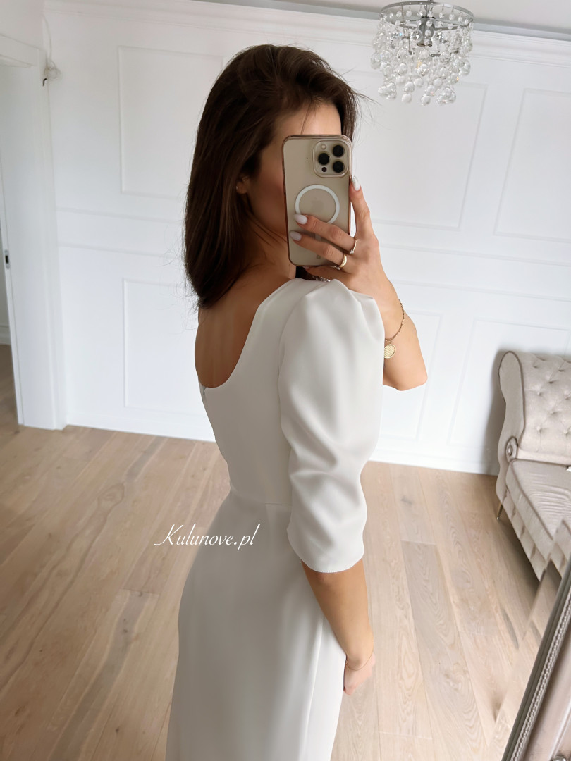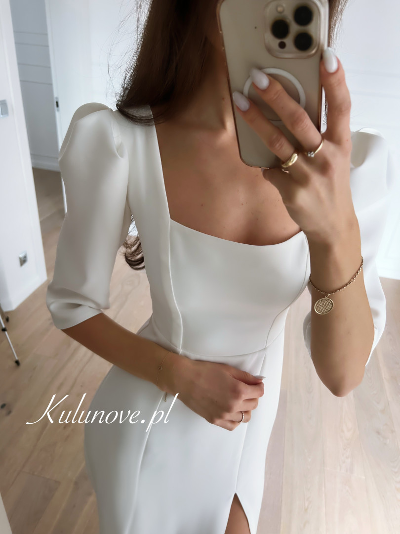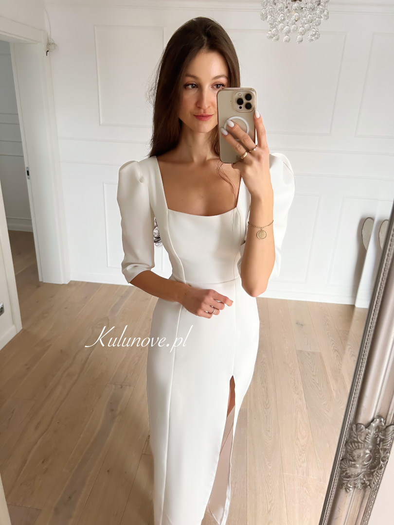Sylvie - simple elegant maxi wedding dress with 3/4 sleeves